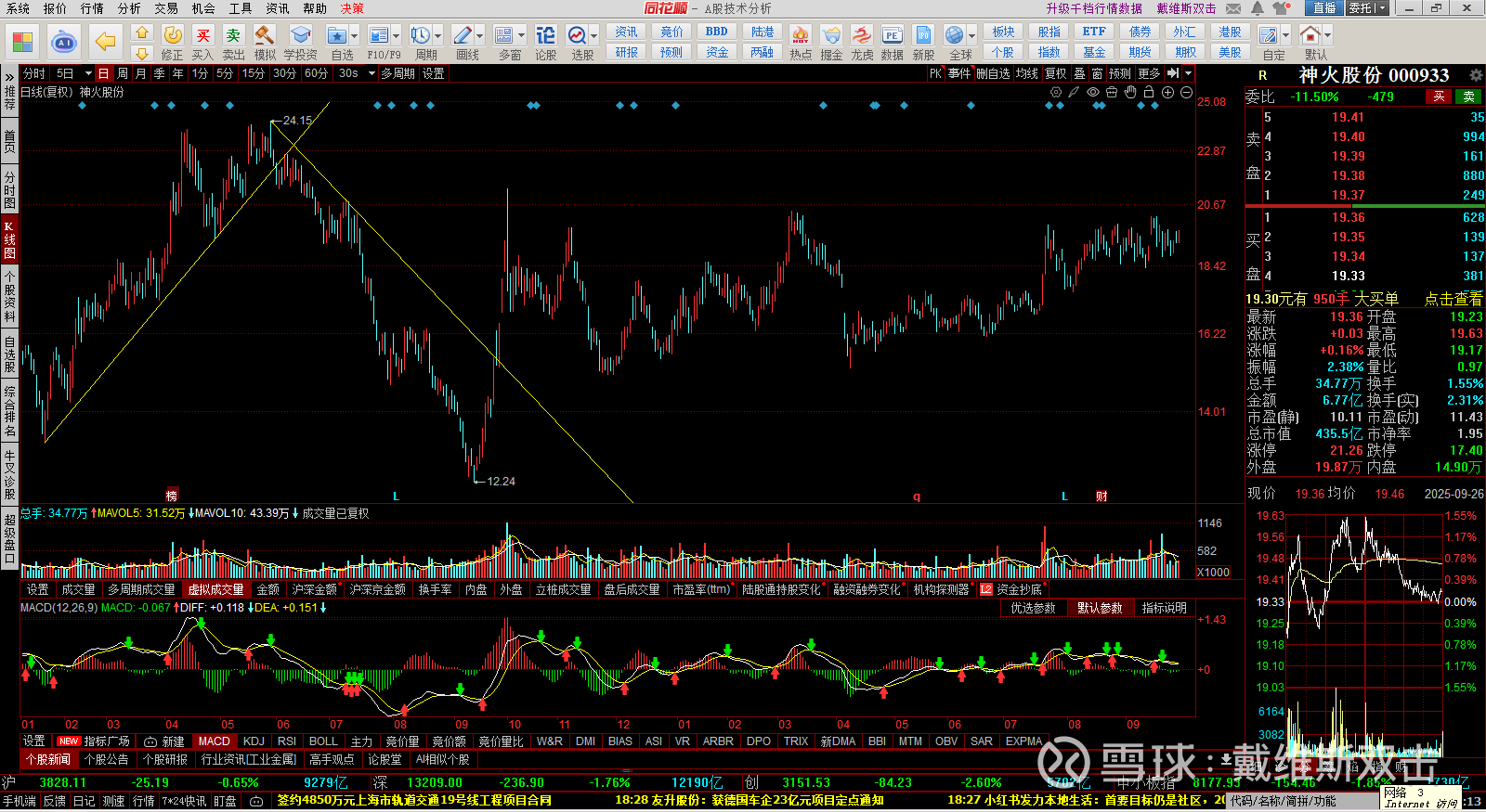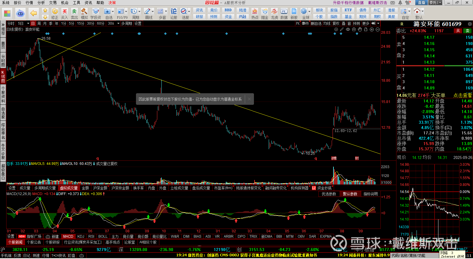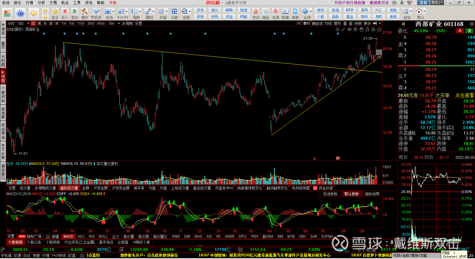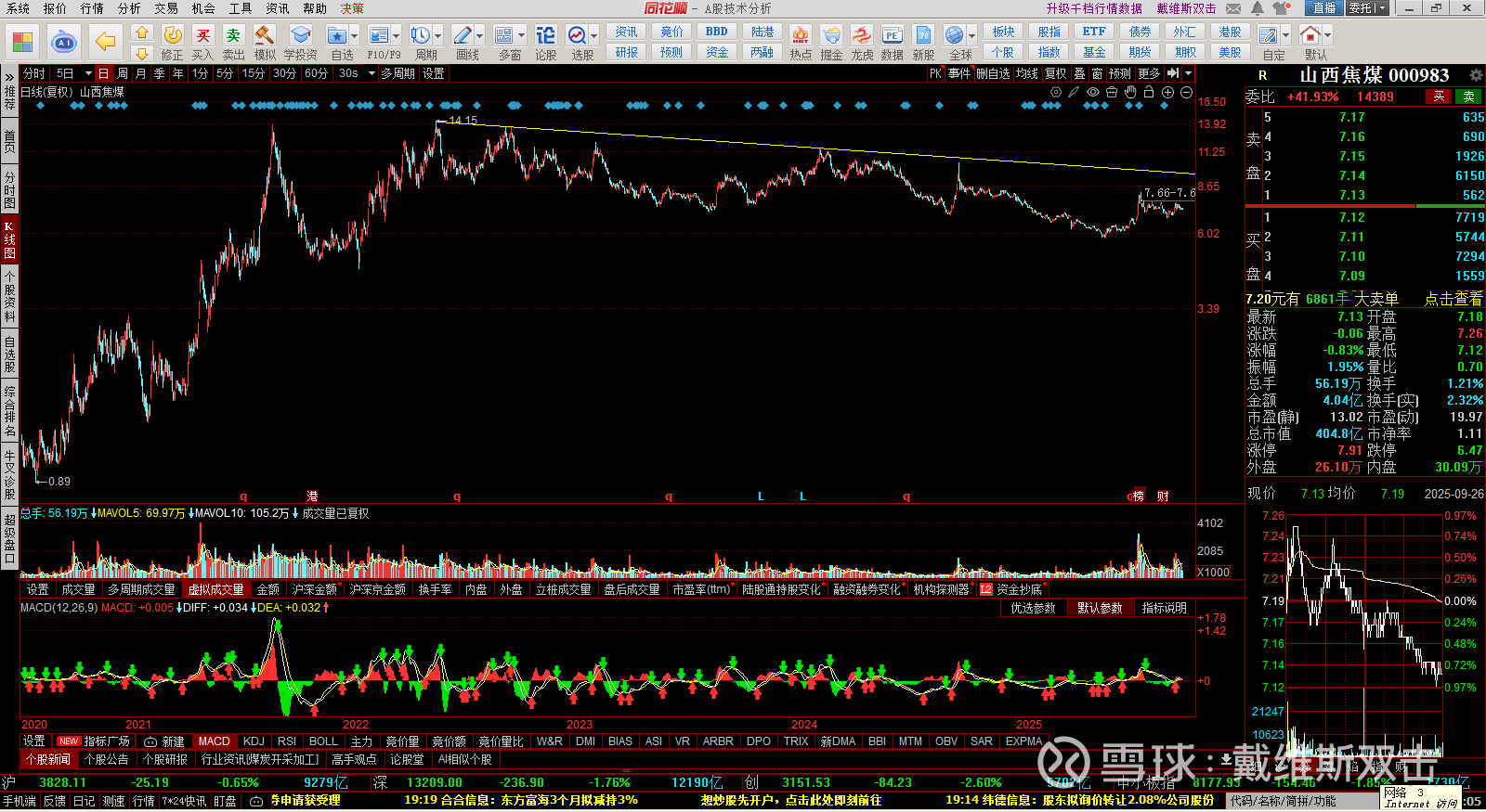 (2) 陕西煤业:一旦跌破上升趋势线,就是确认C浪开始