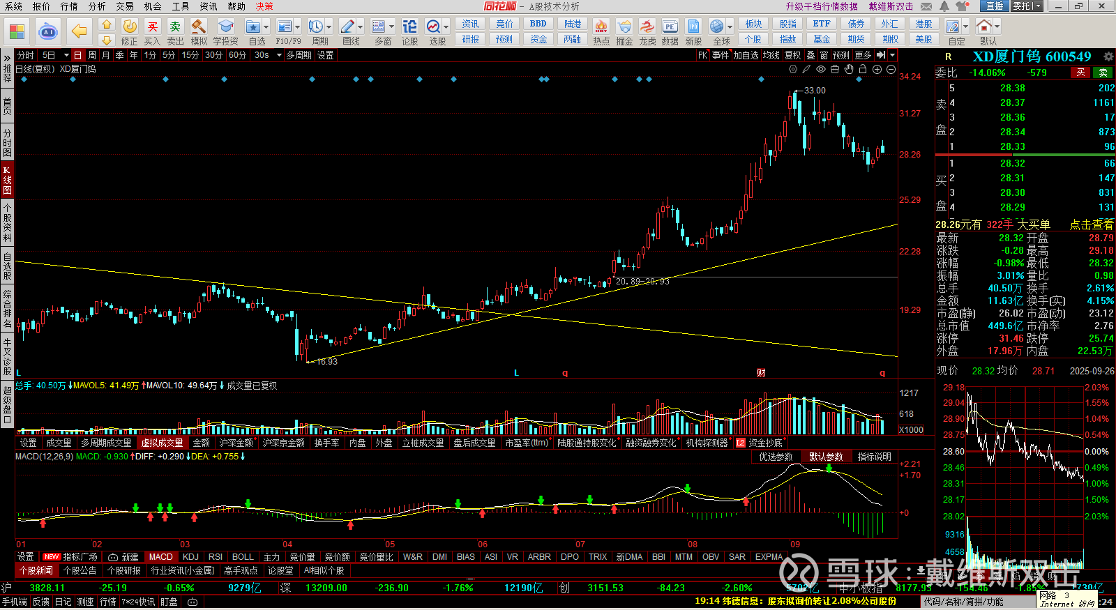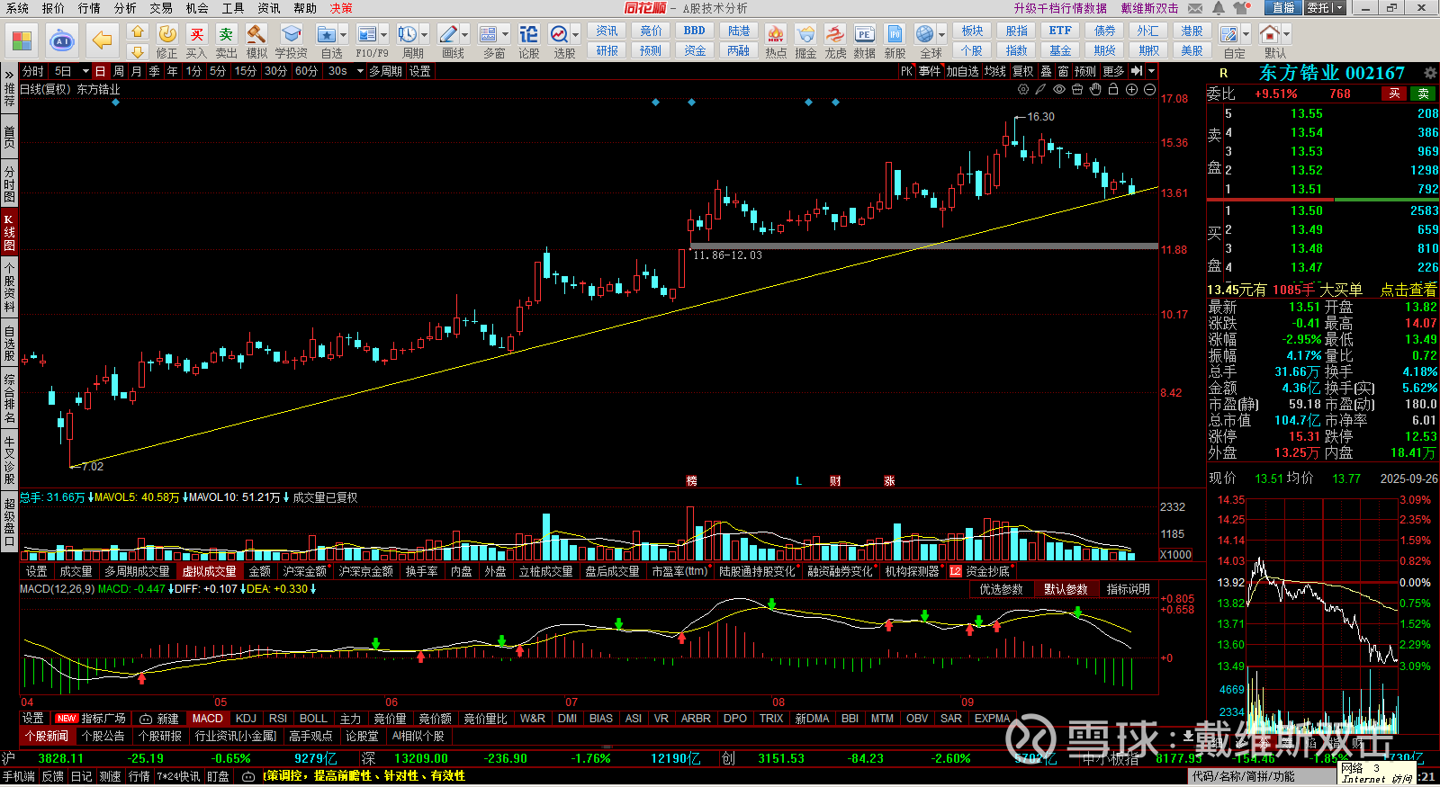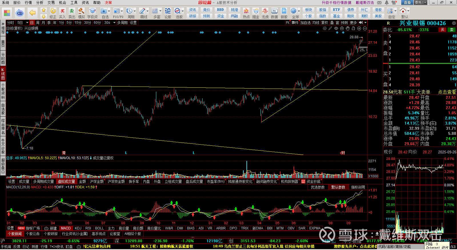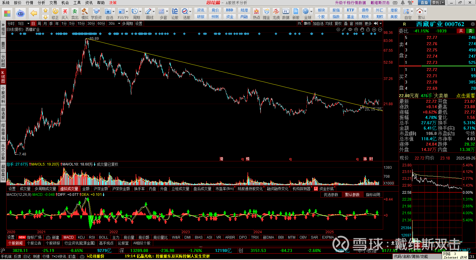 (2) 陕西煤业:一旦跌破上升趋势线,就是确认C浪开始