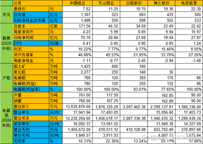 现在所有电解铝公司基本都自备电厂(电费都便宜,贵的电解铝厂商应该都倒闭了),区别在于氧化铝的自给率。中国铝业和天山铝业基本完全只给还能外销部分氧化铝。云铝部分自给,而神火和电投能源基本靠外购。如果认为氧化铝还会长期跌价,那么后三者更加受益,如果希望稳妥一点那么前二者可以基本无视氧化铝的波动。