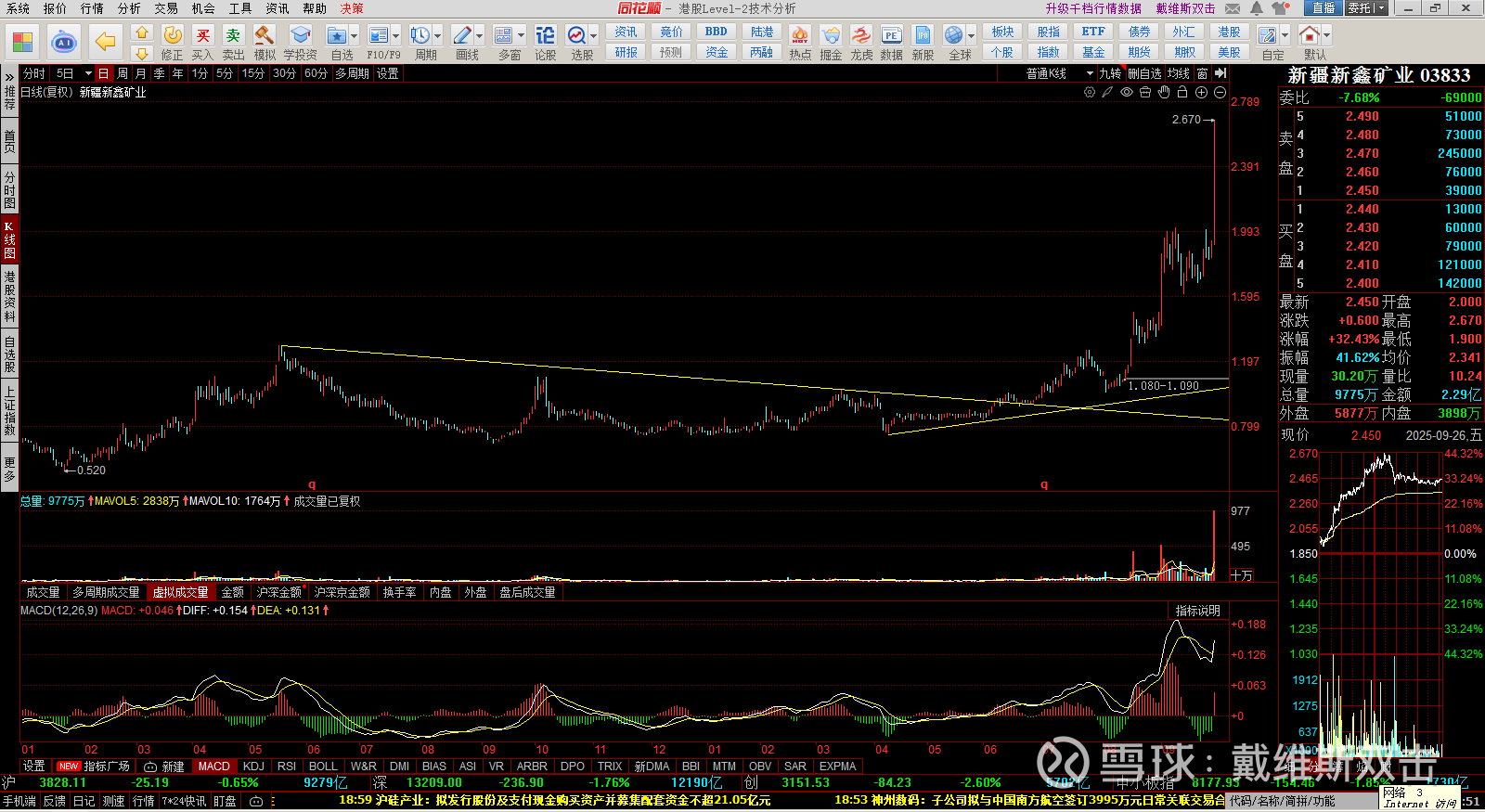 (3) 新疆新鑫矿业: 买在了下图最低点但是卖飞在最长的阳线前。主要是它要回A股了。