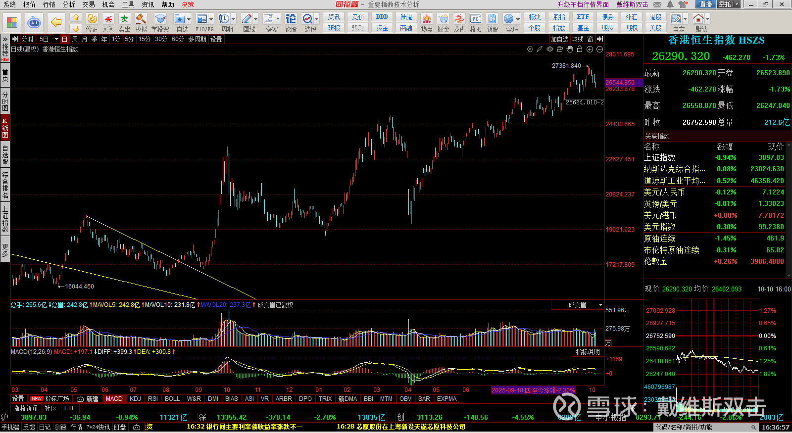 (1) 恒生指数:5连阴,关键看前低的支撑