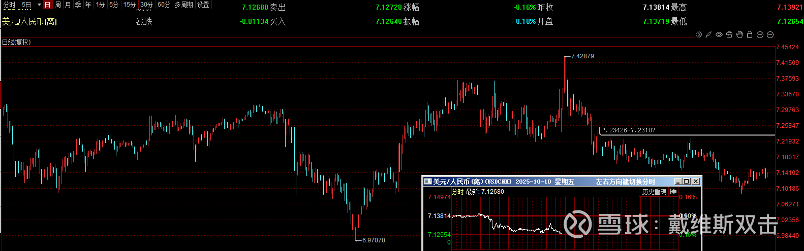 【人民币兑美元中间价报7.1048,上调54.00点】在岸人民币兑美元收盘报7.1232,较上一交易日上涨14点。