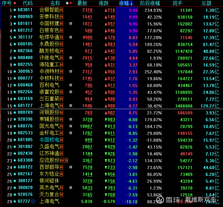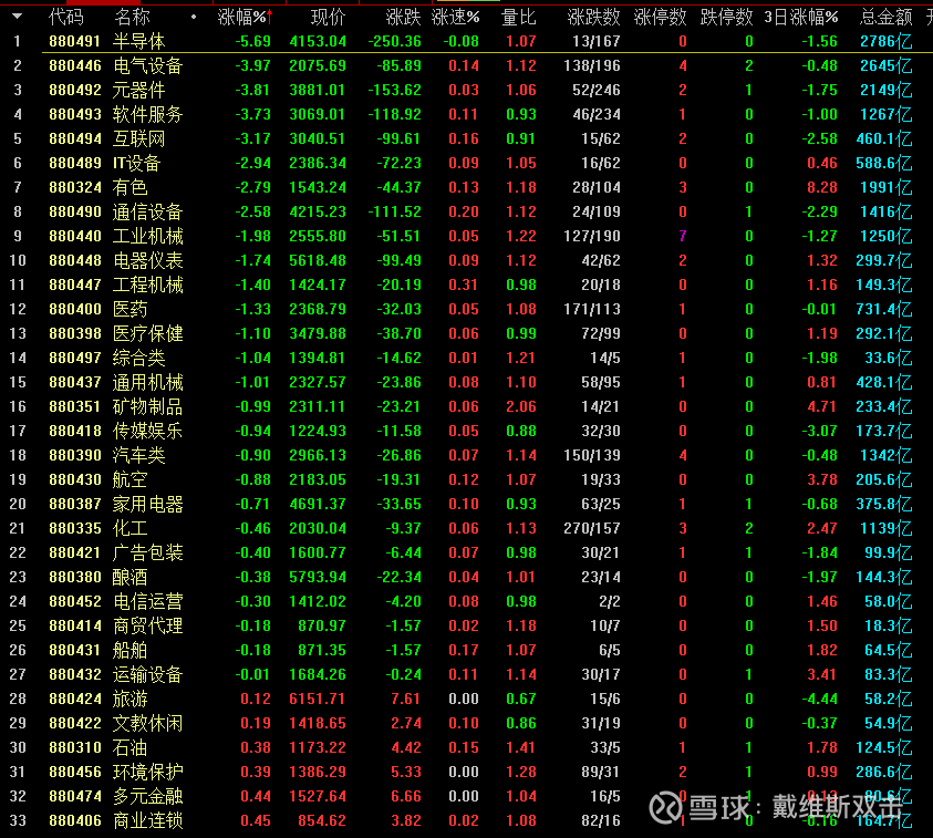 (2) 相反前期作为牛市主线的板块跌幅前列,例如 半导体,电气设备,有色等。