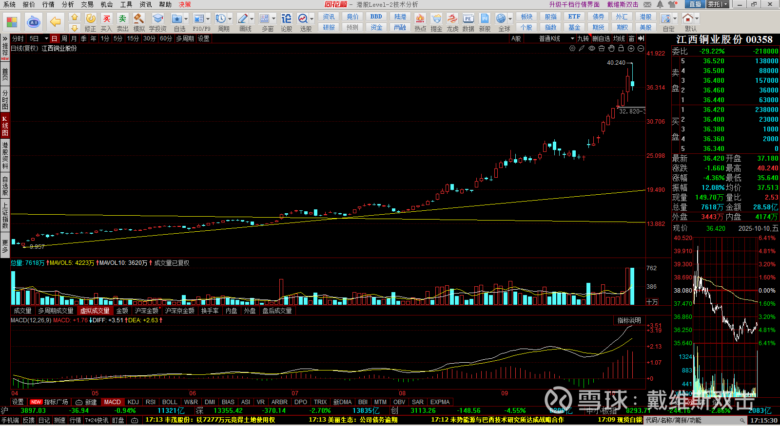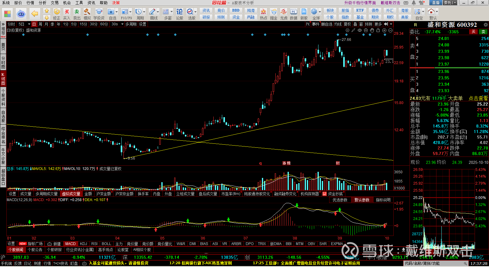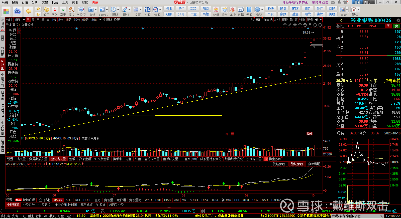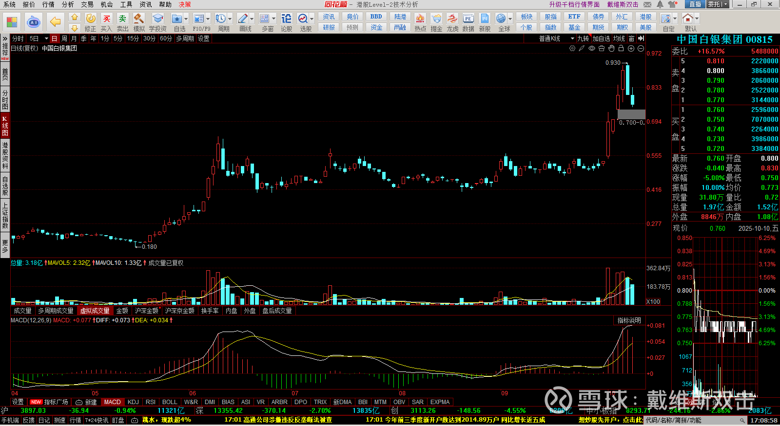 (4) 中国白银集团:昨天就是断头铡刀走势,今天缩量续跌。昨天的高点应该是短期的高点。