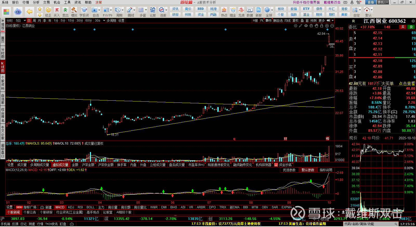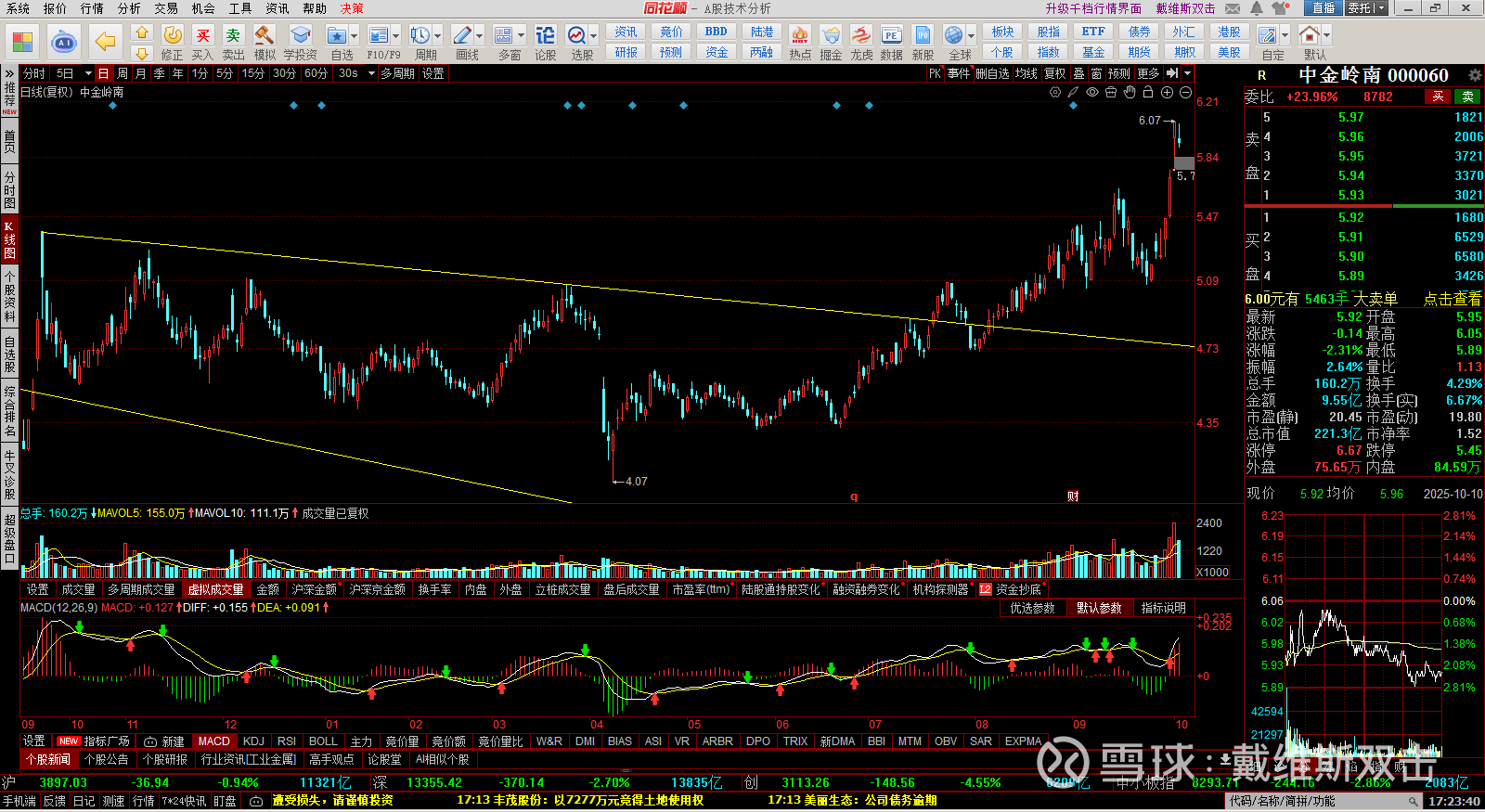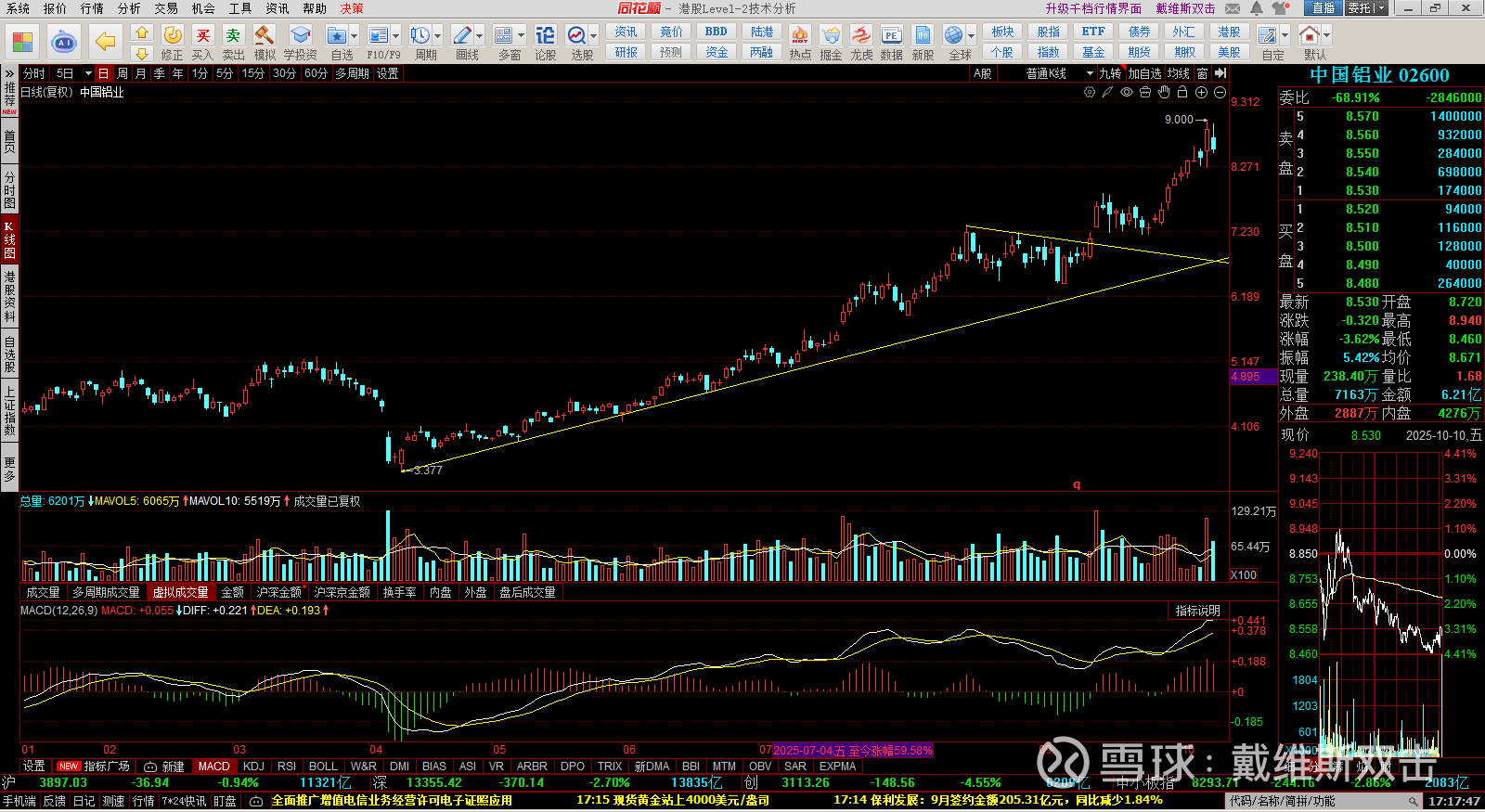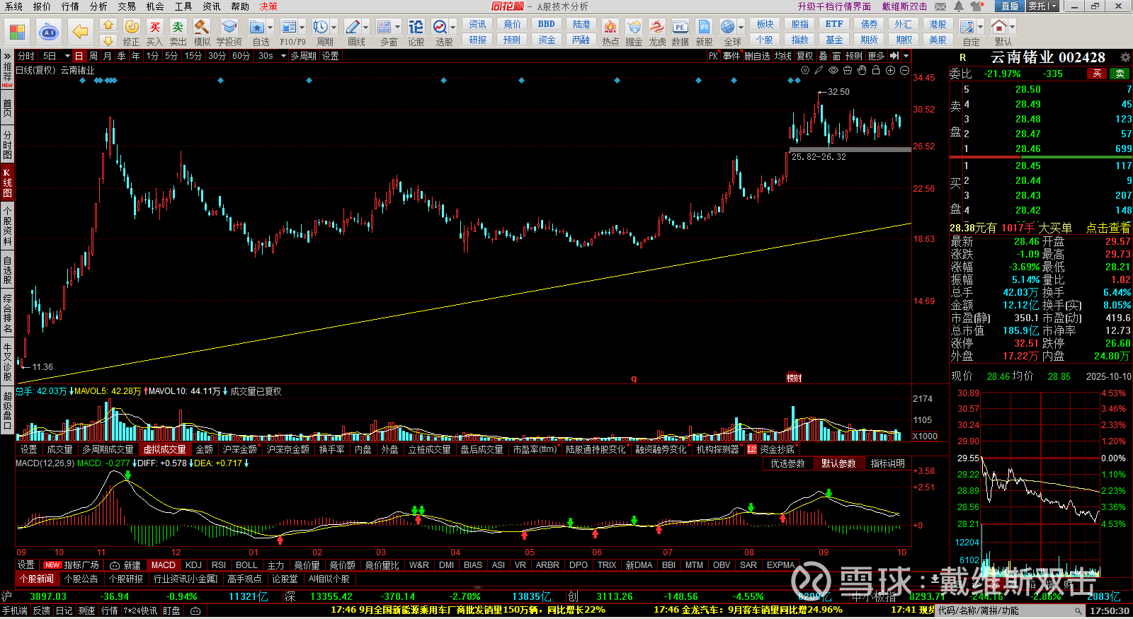 (4) 中国白银集团:昨天就是断头铡刀走势,今天缩量续跌。昨天的高点应该是短期的高点。