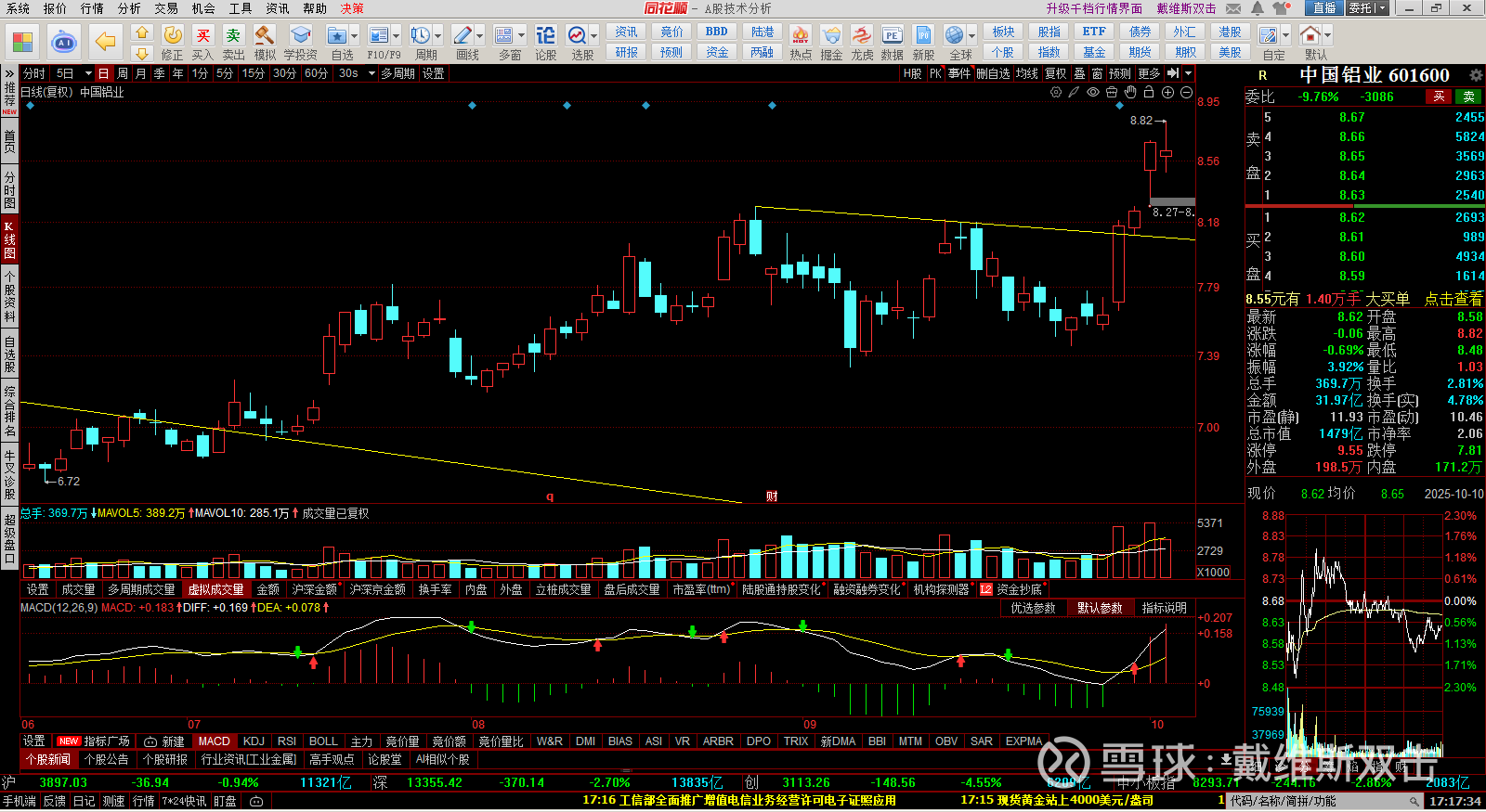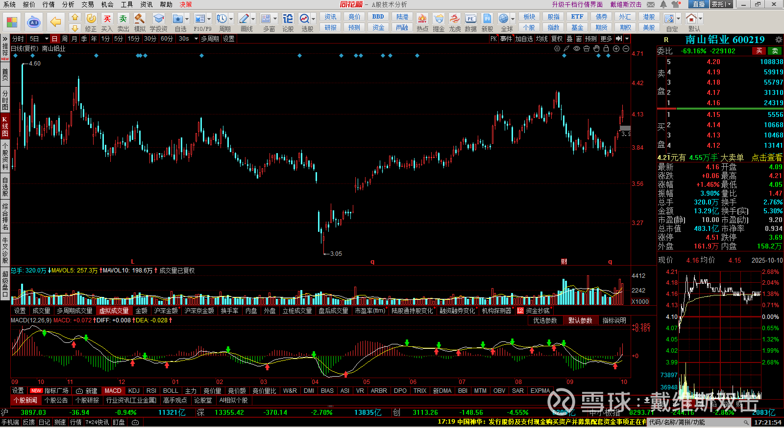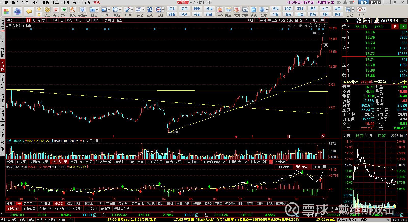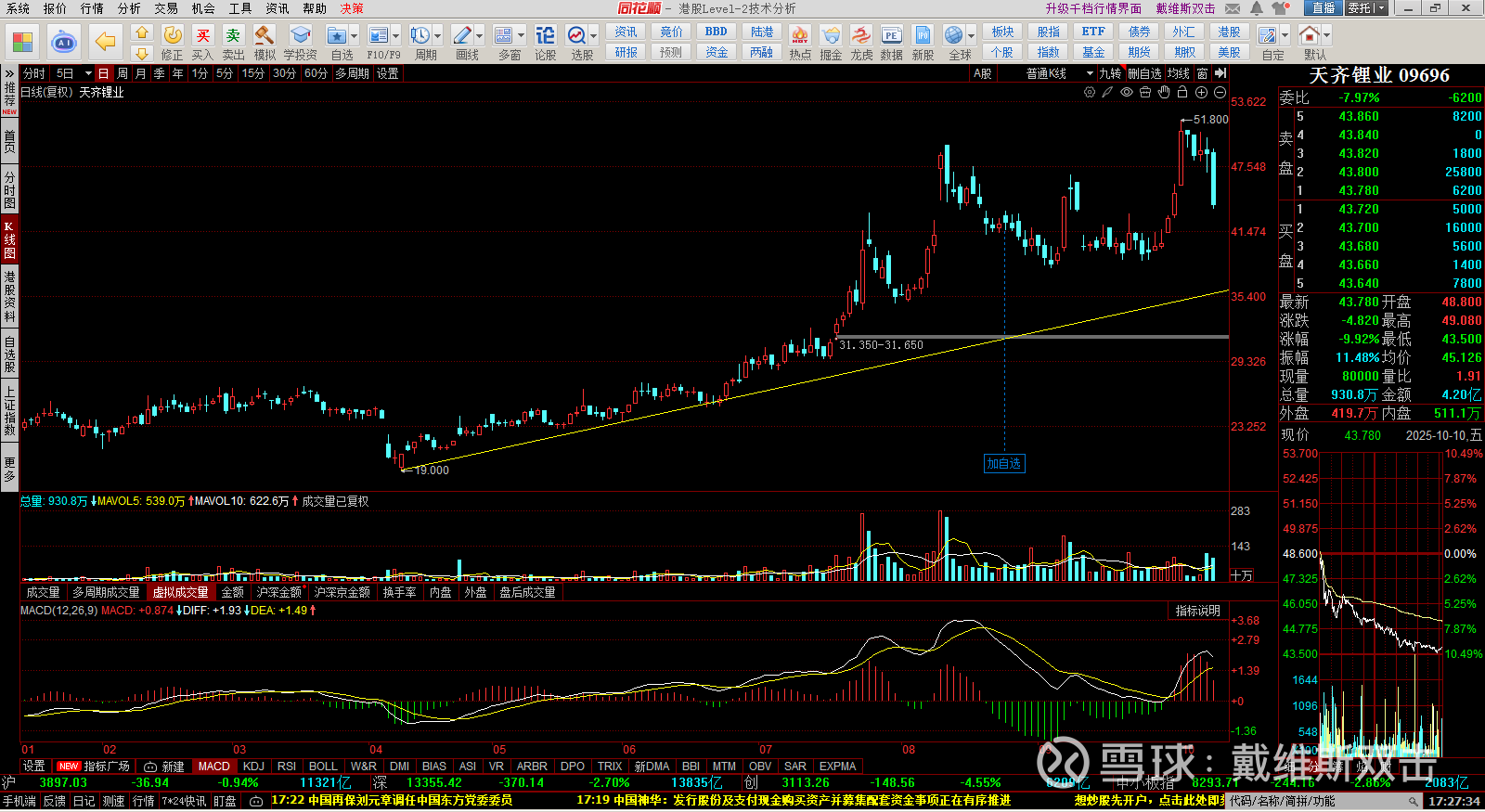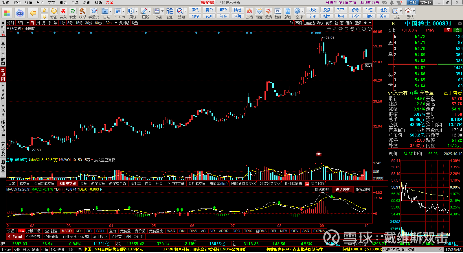(4) 中国白银集团:昨天就是断头铡刀走势,今天缩量续跌。昨天的高点应该是短期的高点。