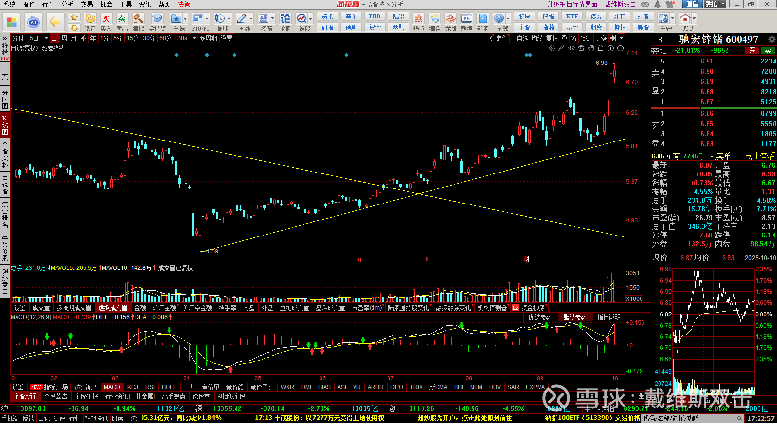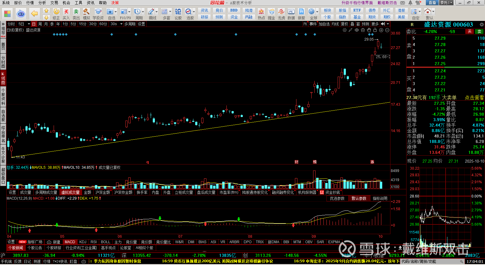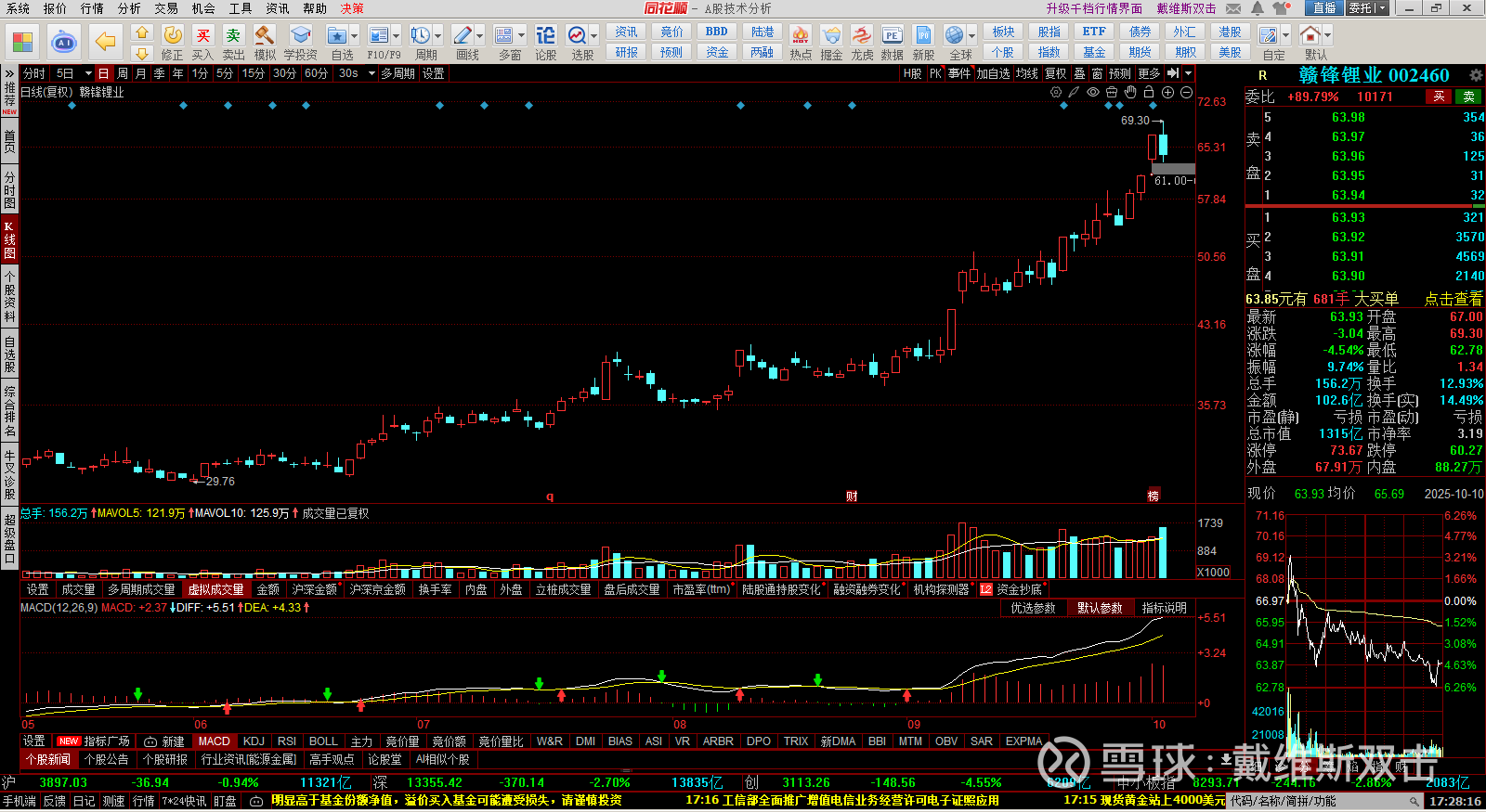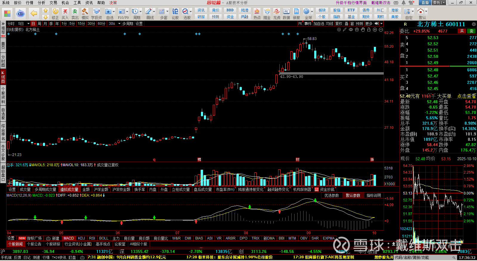 (4) 中国白银集团:昨天就是断头铡刀走势,今天缩量续跌。昨天的高点应该是短期的高点。