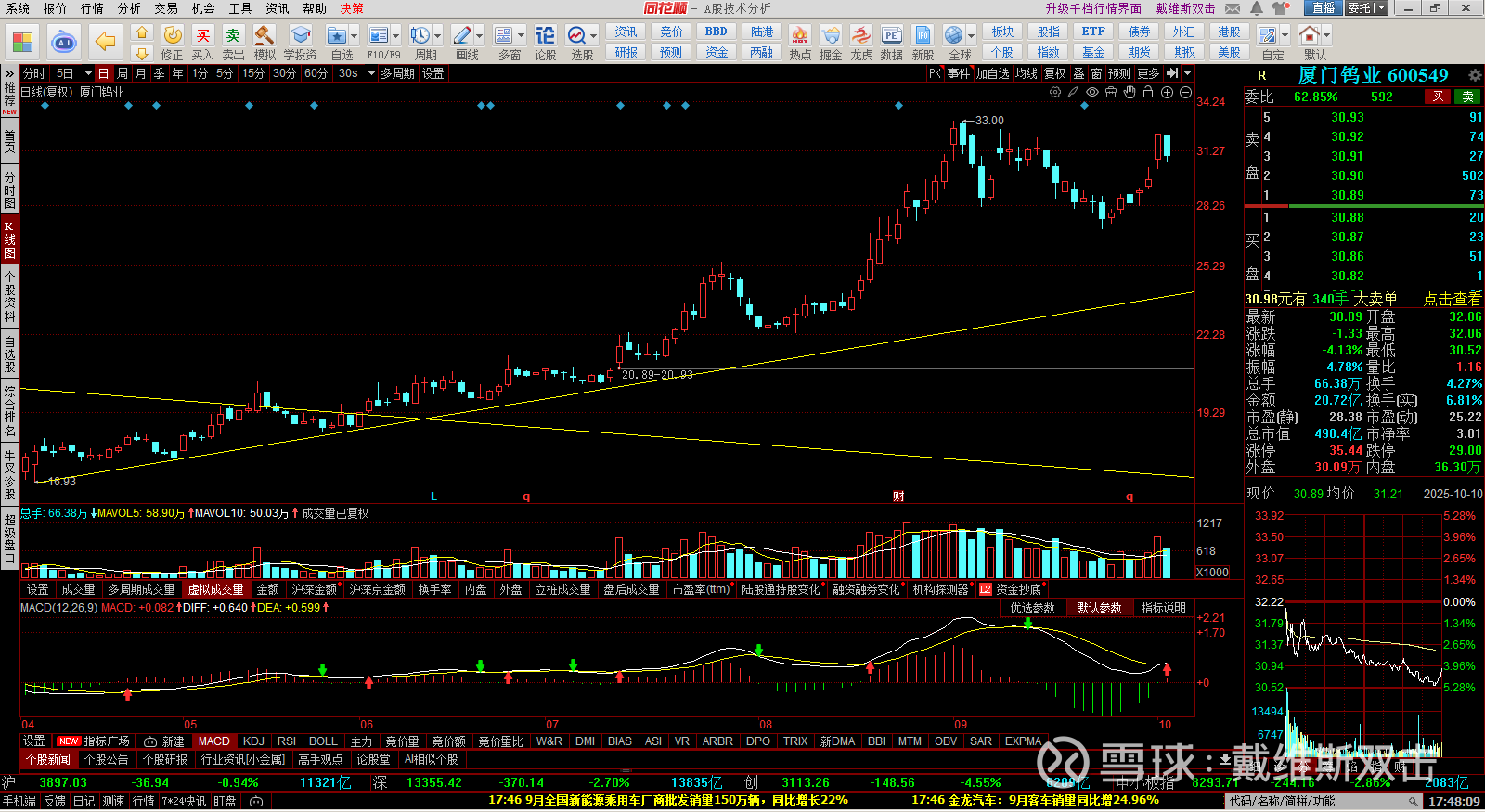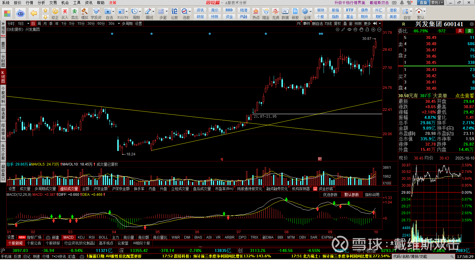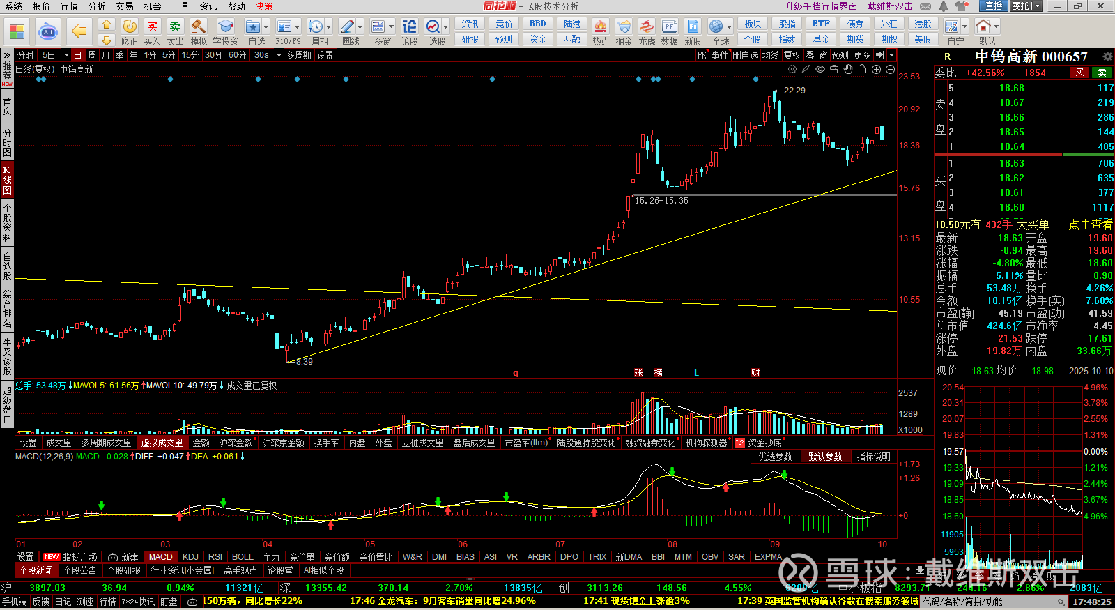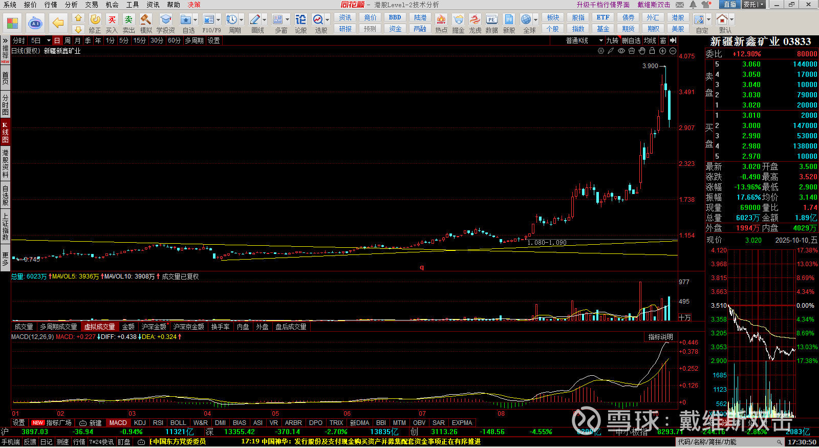 (2) 新疆新鑫矿业:昨天见了高点,今天就大幅下杀。