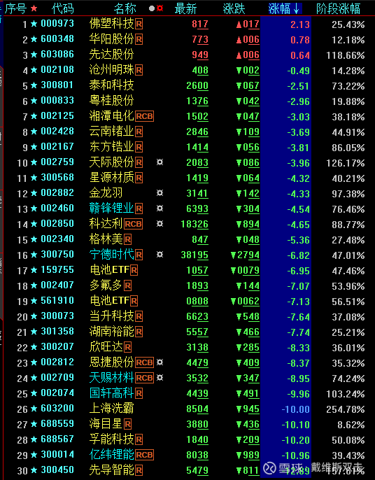 昨天在抖音上看见一片文章说磷酸铁锂做的电池密度已经可以达到585GW,这意味着磷酸铁锂可以应用于高端车,也就是说不再需要用 钴镍做的三元电池。如果确实,那么钴的涨价逻辑就会被颠覆。因此这个板块未来不再进入视野。