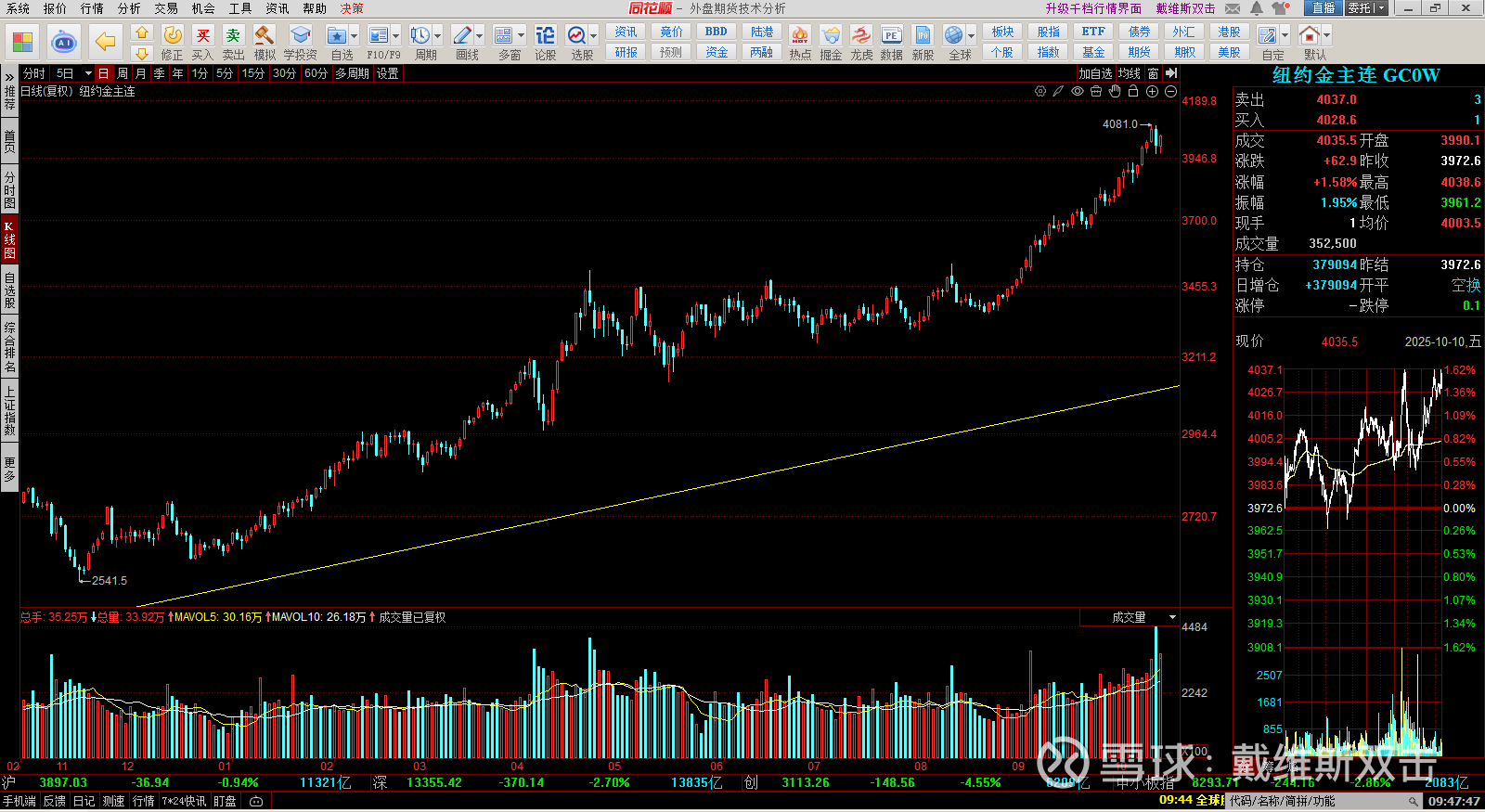 Comex黄金期货经过一段时间的加速上涨,在突破4000美元后开始了调整,这个调整属于什么性质还是需要时间判断的。