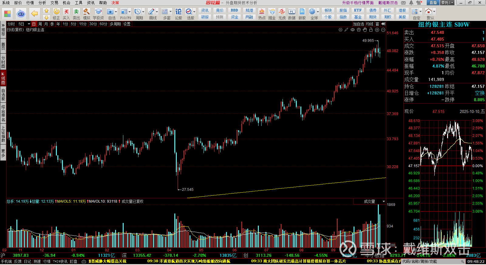 Comex白银期货就是黄金的补涨品,黄金短线见高点后,白银也会开始调整。同理,白银股也不过是黄金股的跟班,走势最多落后1-2个交易日。