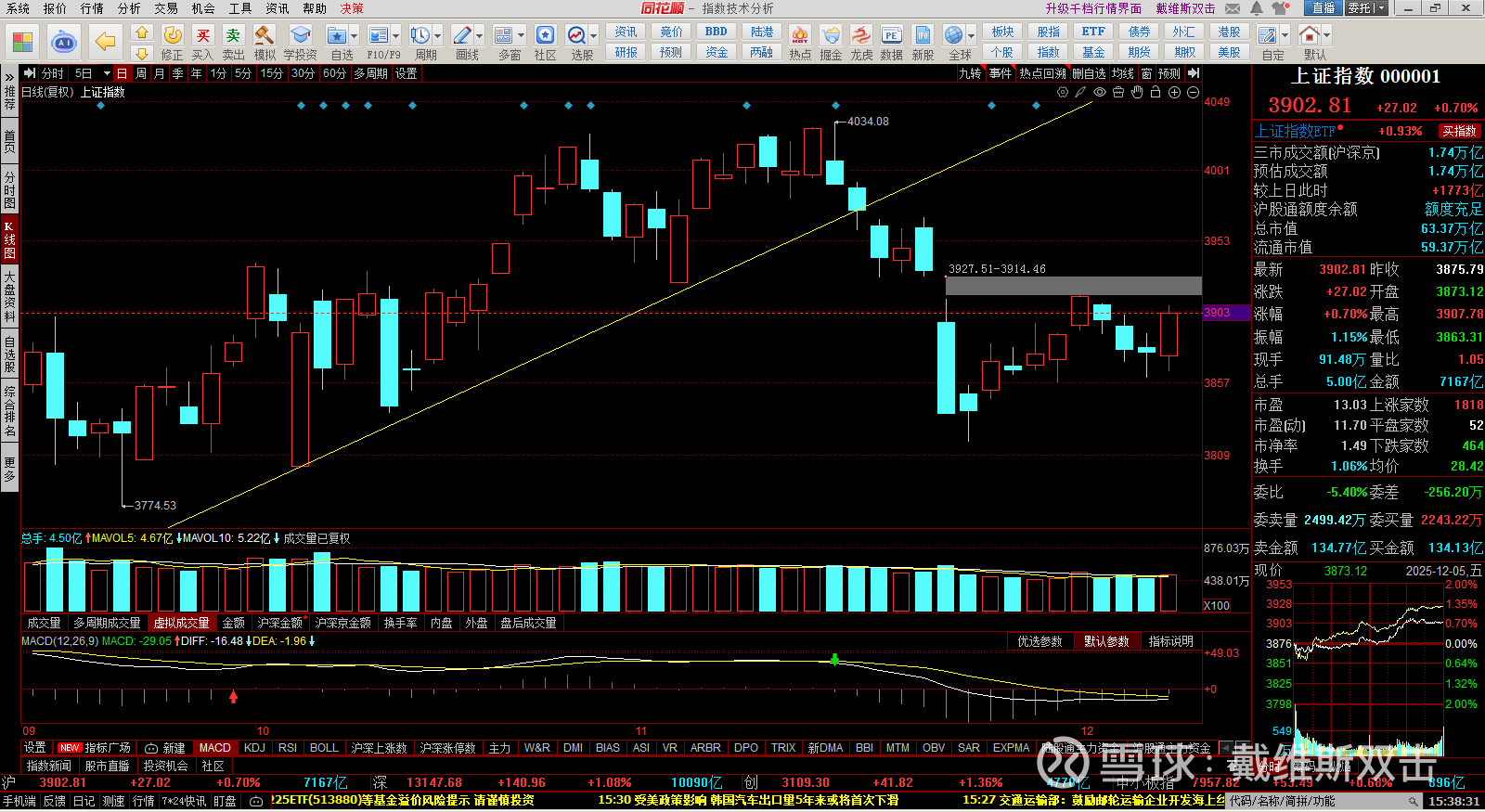 按过往经验,整个12月份都是各大主力机构等待绩效考核和休息的时候,或者为来年布局。成交量萎缩后,指数层面和行业板块方面很难形成新的推动浪,唯有个股行情,特别是重组股和跨年妖股活跃。