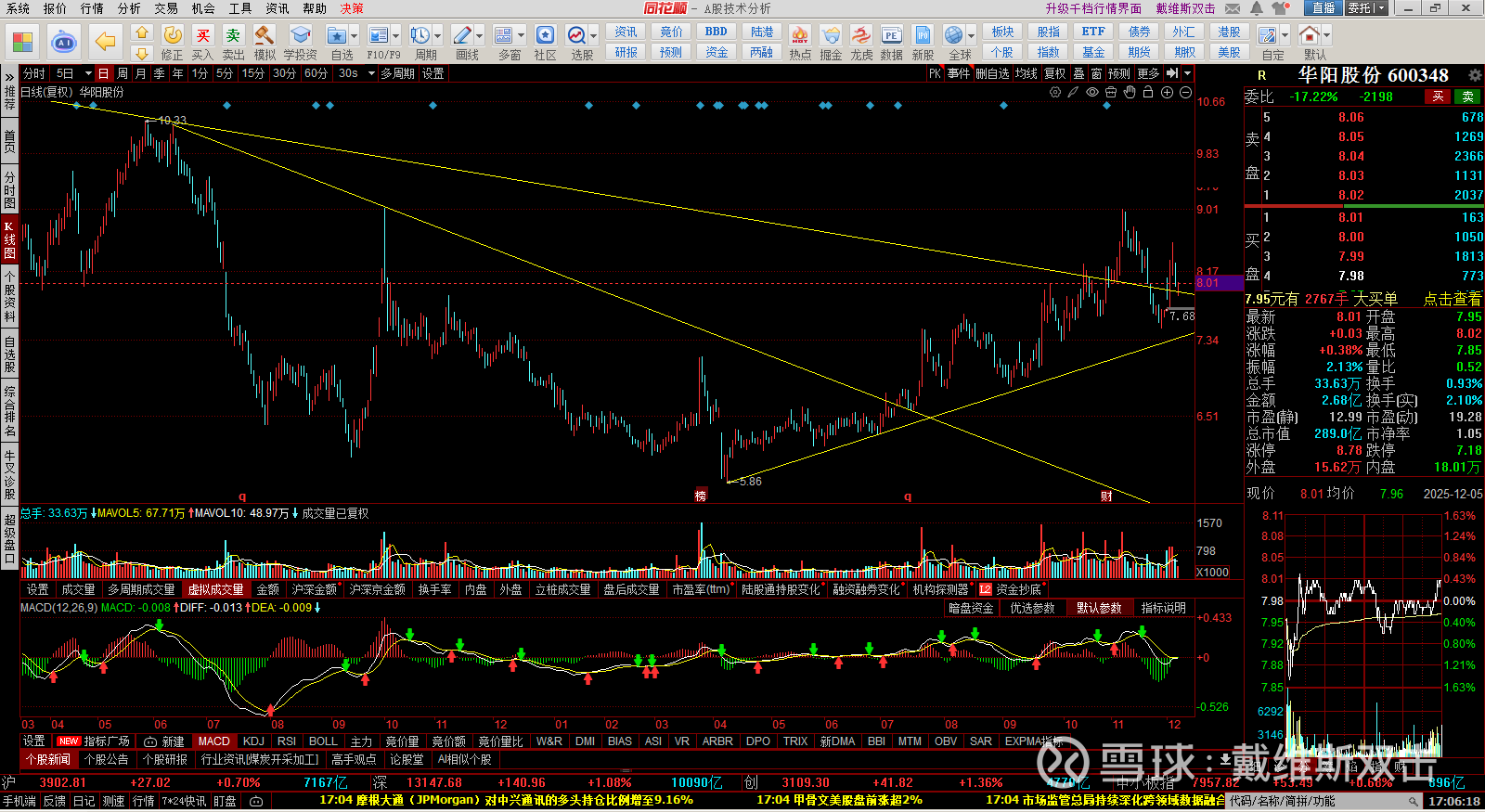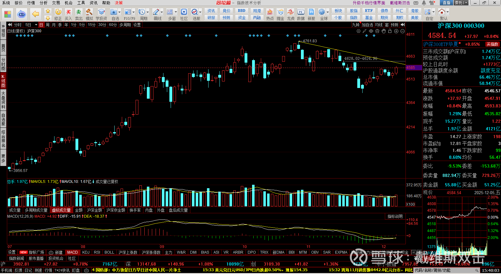 (3) 沪深300: 反弹到下降压力线后,应该还有一次回落。