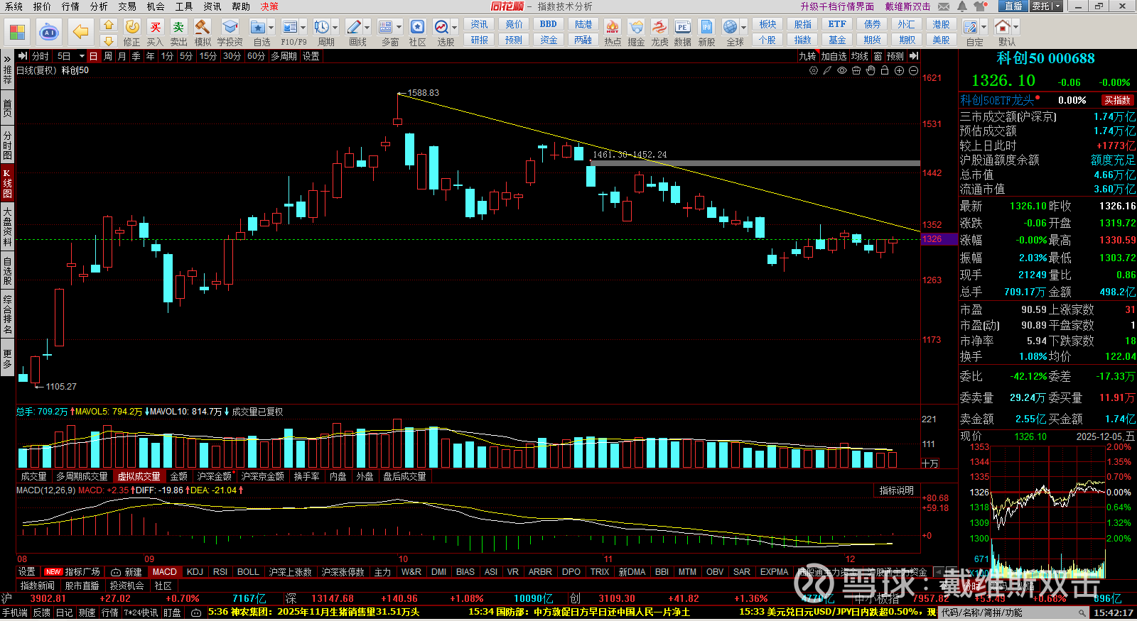 (4) 创业板指:反弹后回落构筑右肩,有可能形成菱形整理,等待突破方向。