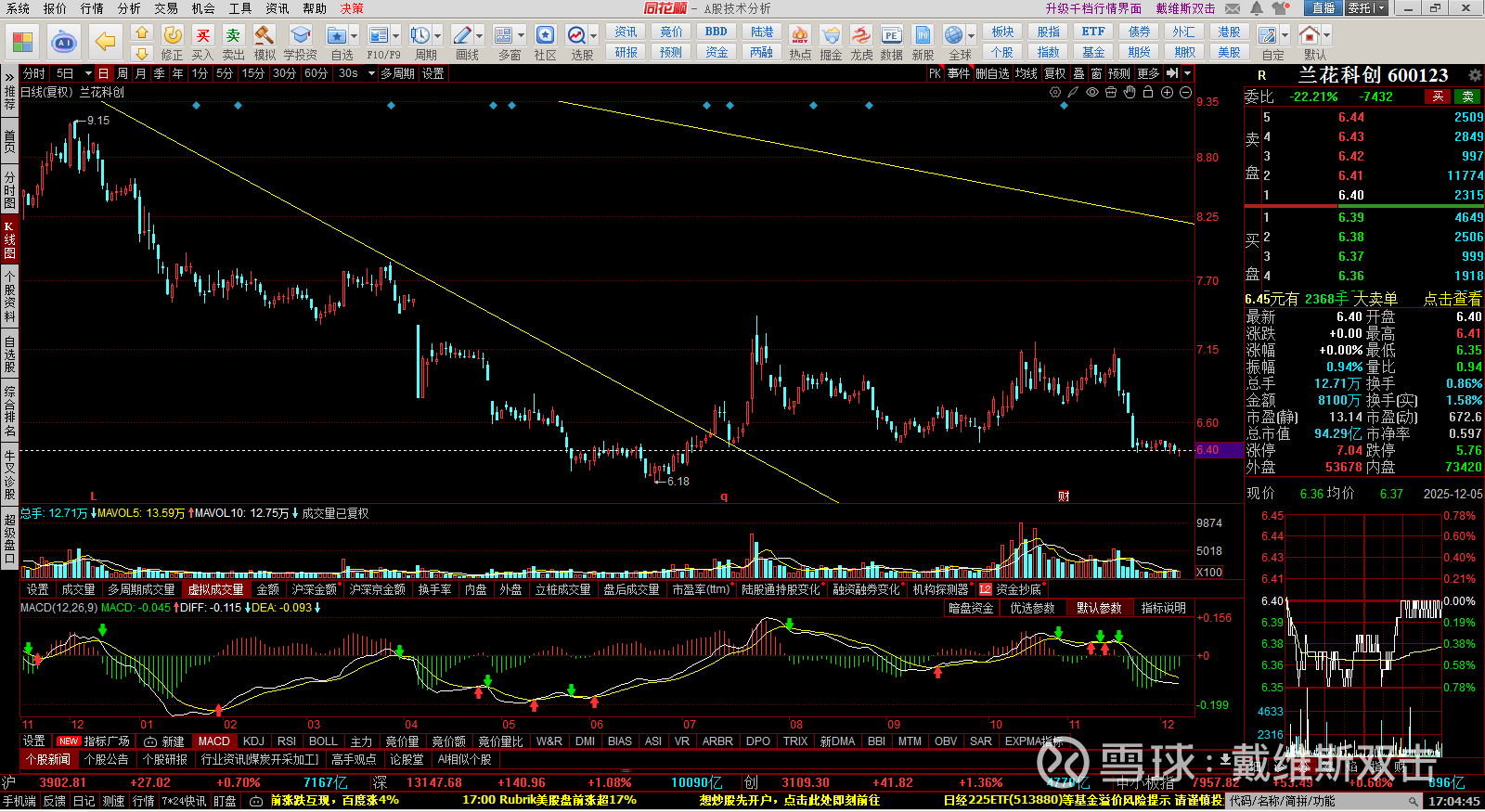(5) 科创50:反弹到下降压力线后回落