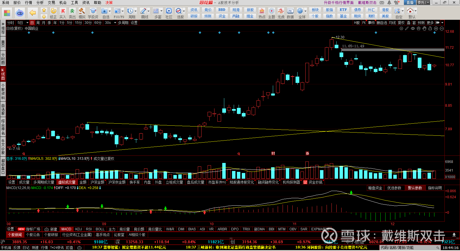 (1) 中国铝业: A和H 股均减半,纯粹是规避系统性风险,后市依然看好。
