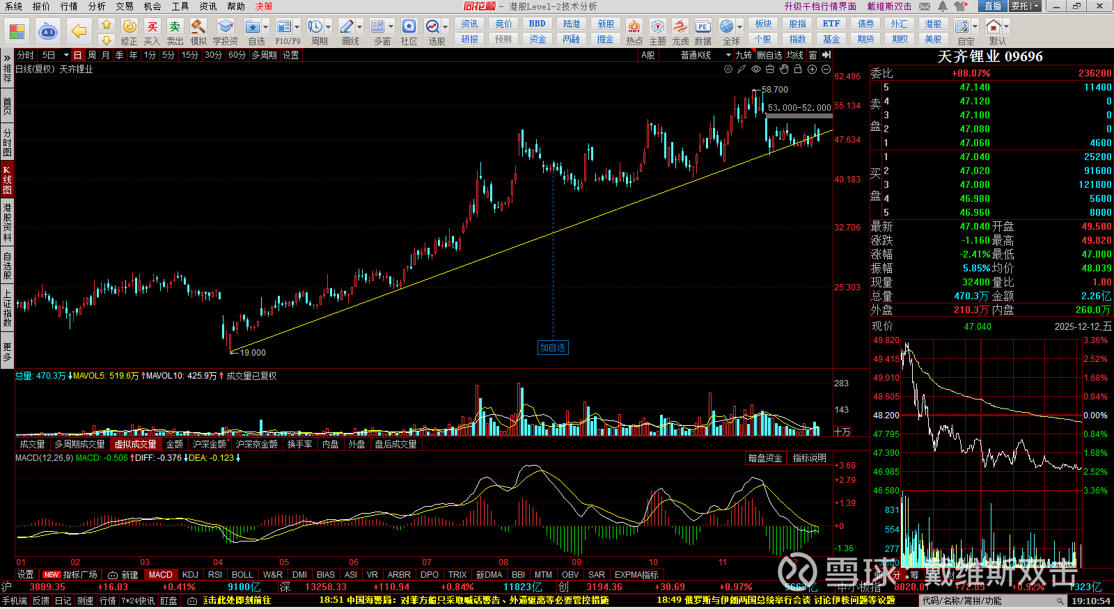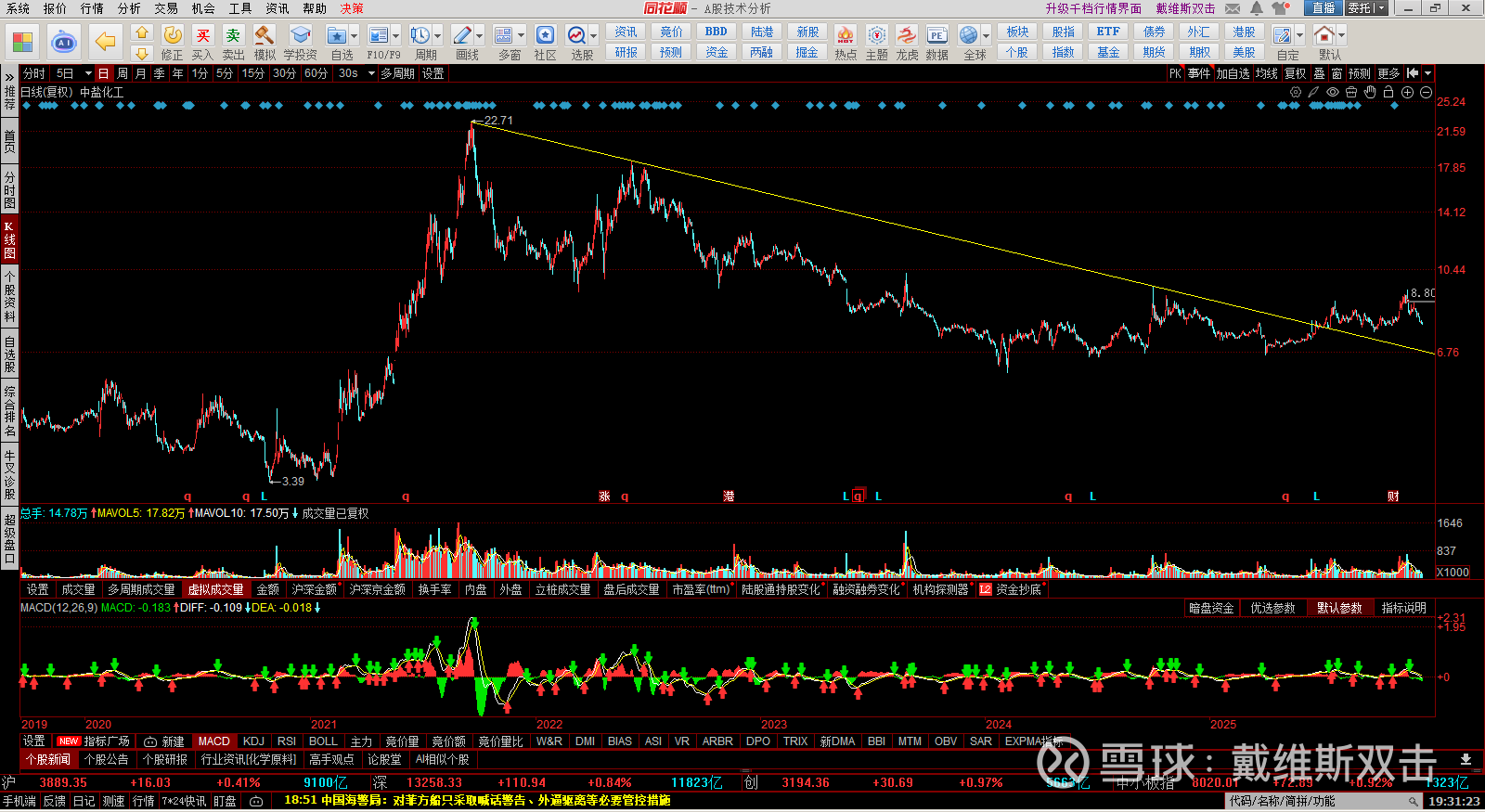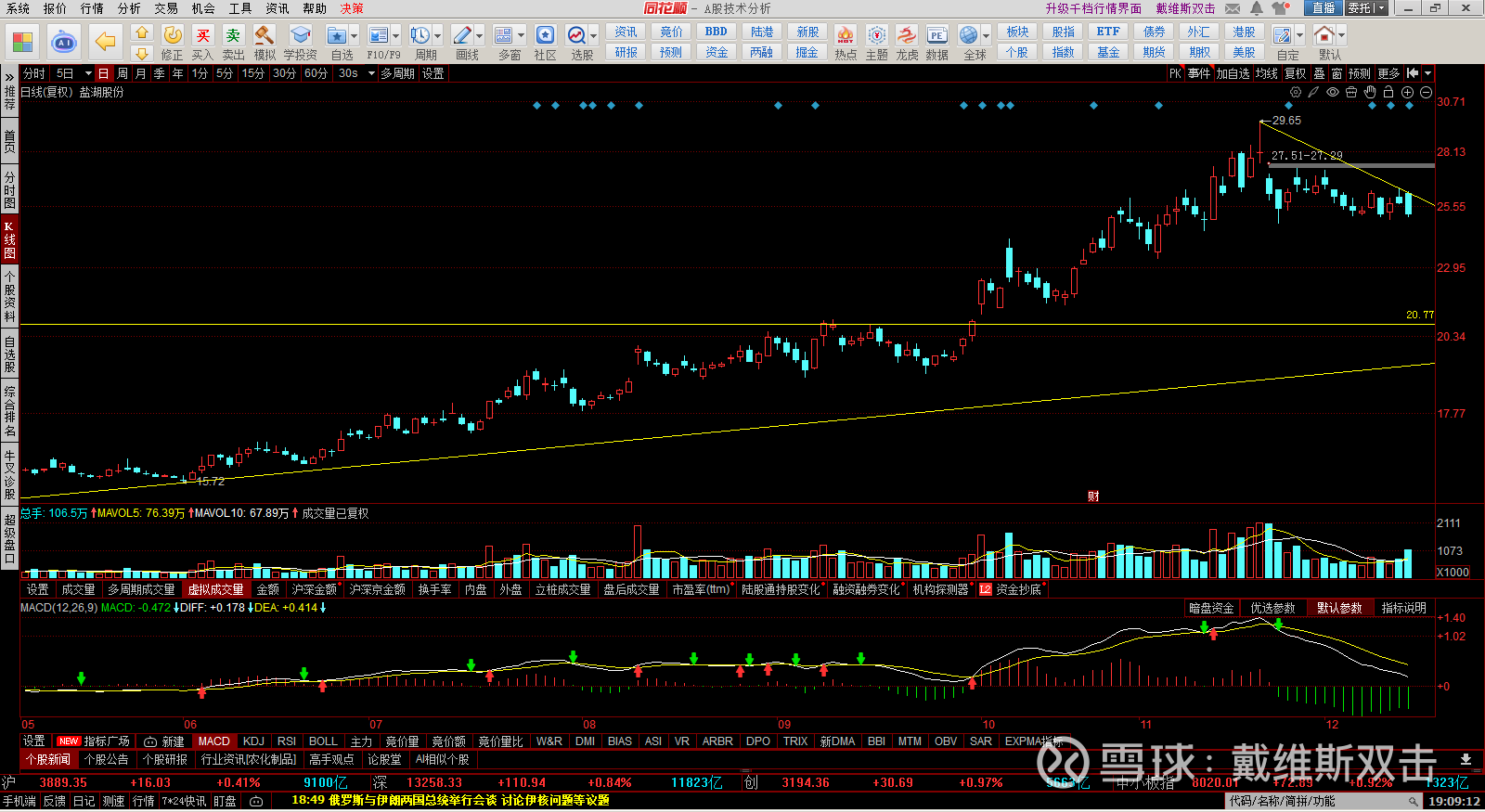 (1) 盐湖股份:从技术面看,完全没有理由加仓。今天的加仓属于左侧交易。
