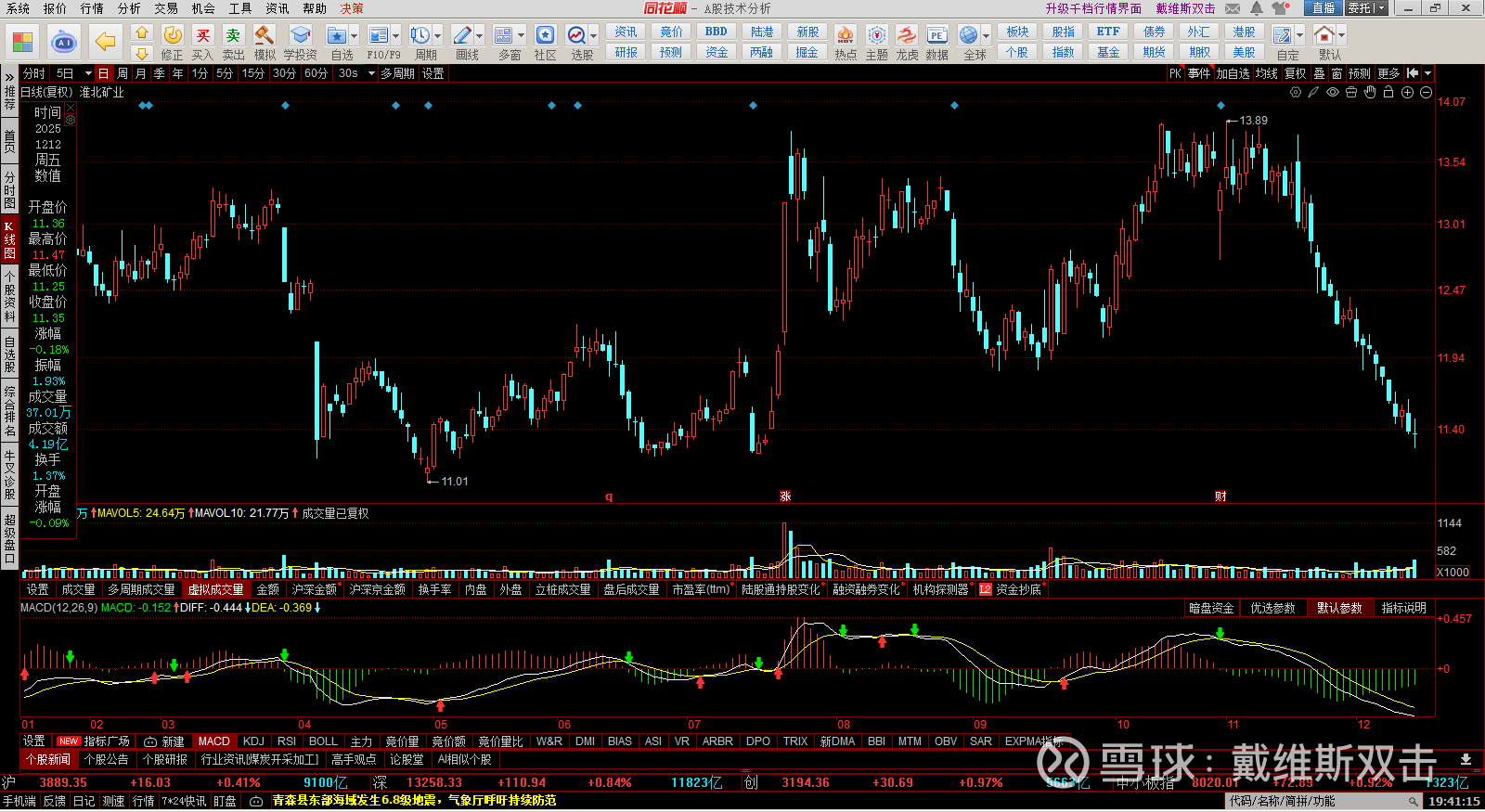 (2) 淮北矿业:日K线上如此的走势,历史罕见。今天出现一个放量十字星,或许反弹在即。