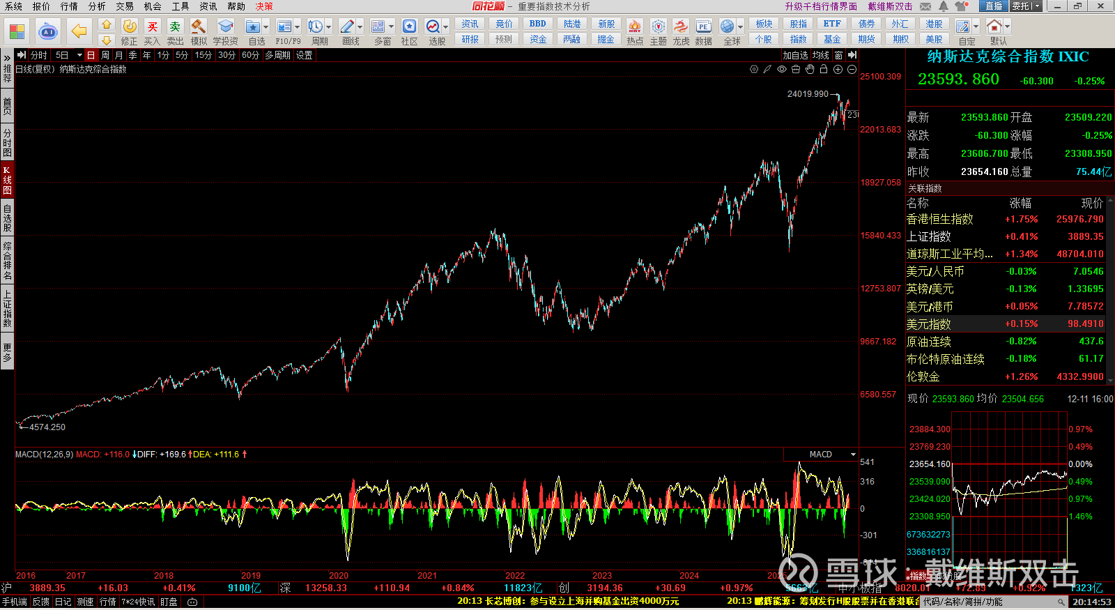(1) 恒生指数:港股是对全球流动性最敏感的股市,看这个指数最大的意义就是为A股指明方向。目前这个位置整理,很有可能就是A股的未来图形。