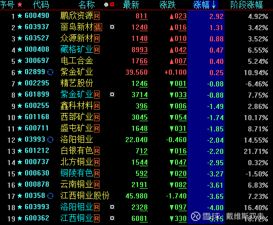 查看图片//@戴维斯双击:回复@牢记先生教诲:是否到头我不知道,但是这个位置,我不会再去看铜和白银。有色金属这个大行业已经牛了1年了,后面大概率不会再全面板块性领涨了。要在涨需2个条件:(1)业绩跟上涨幅消化估值;(2)新的预期。我估计春节后,会有新行业取代有色成为新的主线板块。现在也不用去猜,肯定不是现在热门的板块。