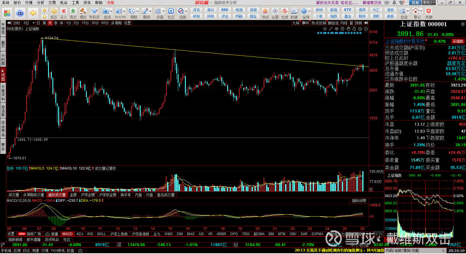 (1) 牛市3浪的上升趋势线早就被跌破了,这个我在2月份就一直在提醒风险。