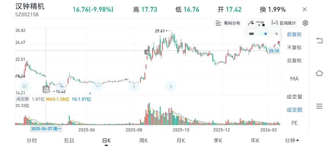 在预期的加持下,汉钟精机一路爬升至156亿。