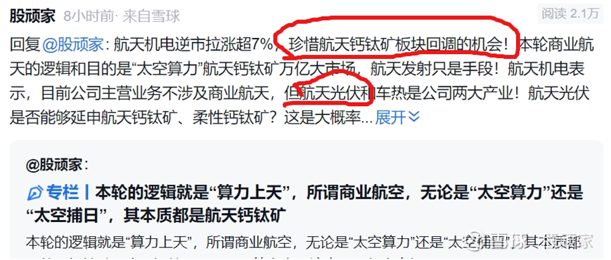 关键马前炮(9:50):珍惜航天钙钛矿板块回调的机会!