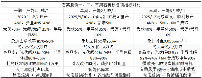 $石英股份(SH603688)$ 2020年,4万吨/年石英砂投产。2025年6月,2万吨/年石英砂投产。2025年12月,6万吨/年石英砂顺利投产。甘肃生产线在建设中。很久了,只听楼梯响,没见人下来。按产能、投产时间分析,可能2025年6月,是技木突破的关键节点。现在每万吨产能投资额更高(一期2.4亿元/万吨,二、三期5.3亿元/吨),证明石英股份管理层信心爆发。