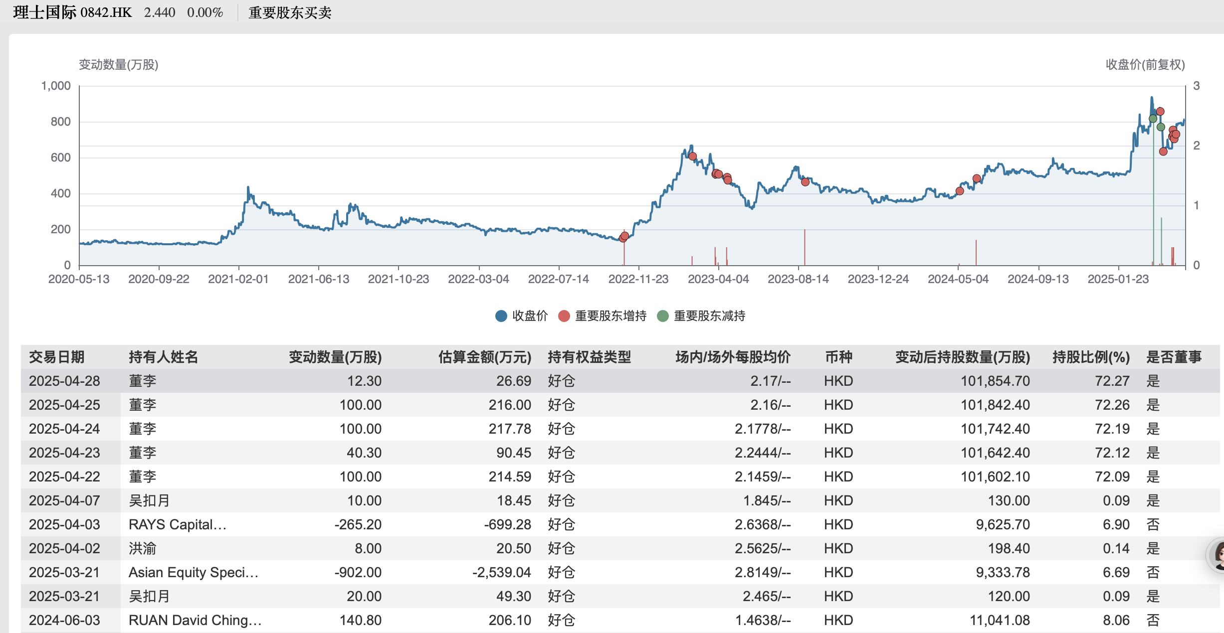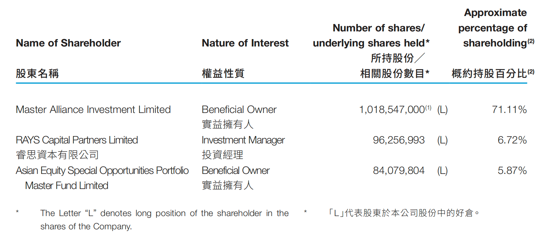 股权结构方面,截止 2025-7-22 日披露,董李100% 持股的Master Aliance公司持有10.63 亿股,占总股本比例为 74.18%,是绝对大股东。
