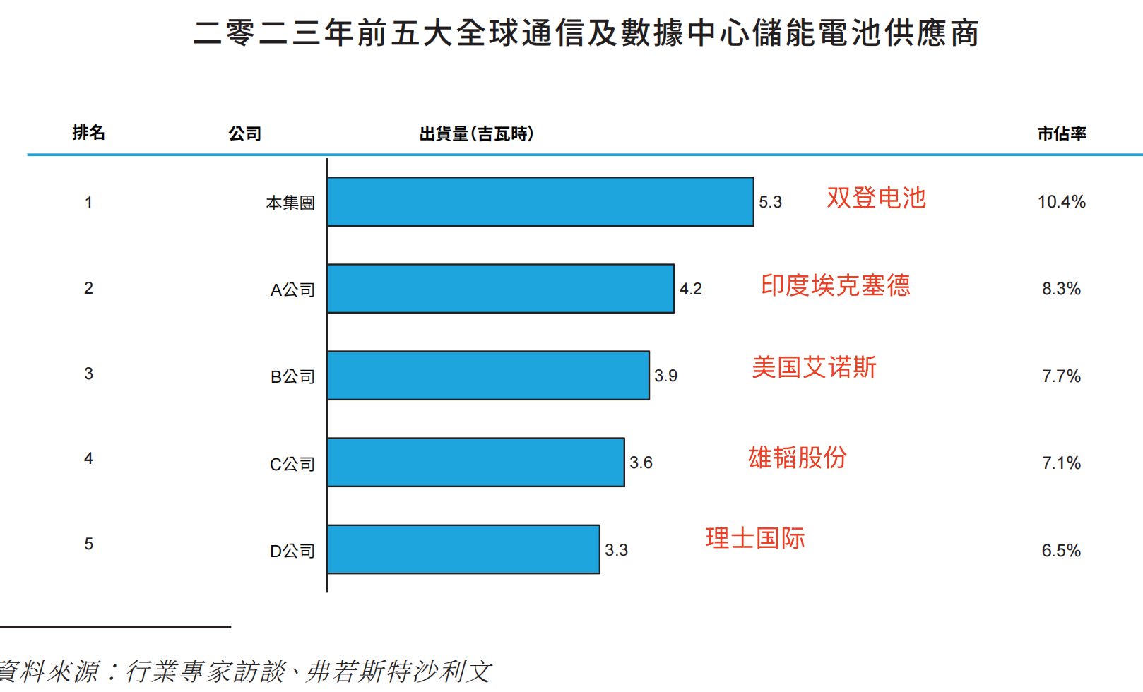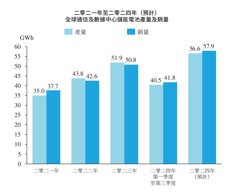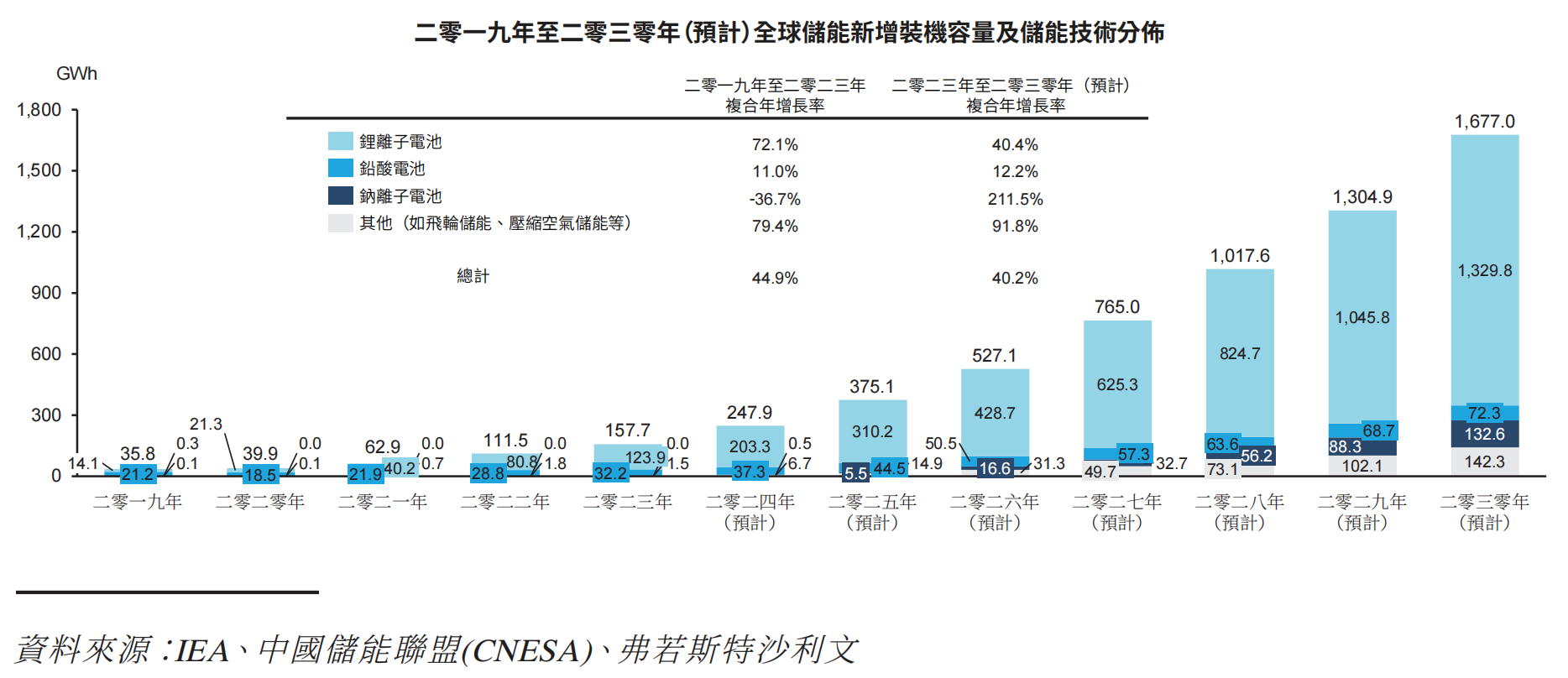 根据著名研究机构弗若斯特沙利文的数据显示,随着人工智能技术的快速进步及数据中心机架运算能力增加,全球数据中心储能新增装机容量预计将由2023年的 13.1 GWh进一步增加至2030年的 212.2 GWh,于2023年至2030年的复合年增长率为 48.8%。