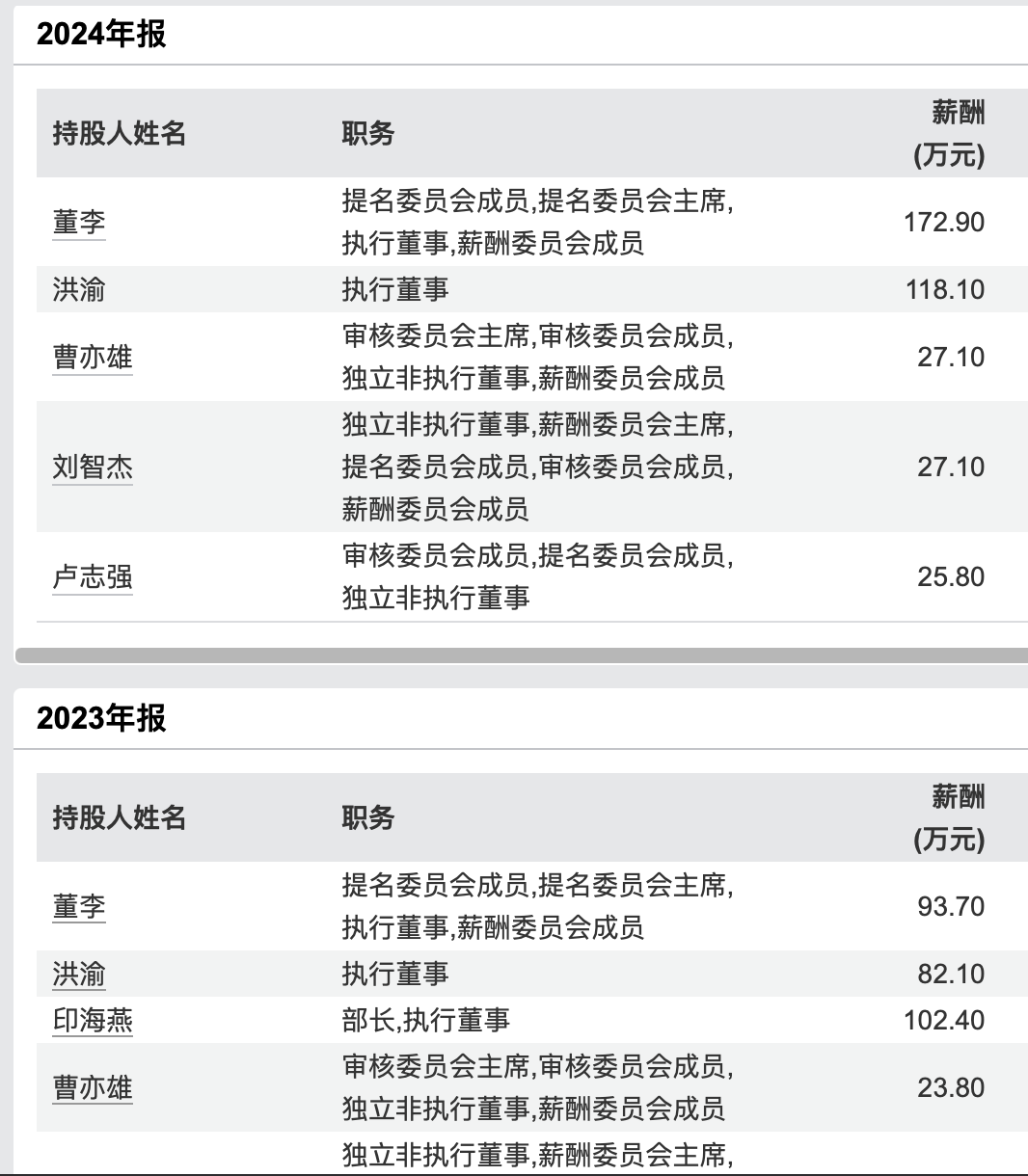 此外,创始人董李在公司领取的工资也很低,2024 年涨了一次工资,年薪 173万元,之前很多年工资只有90万元左右。