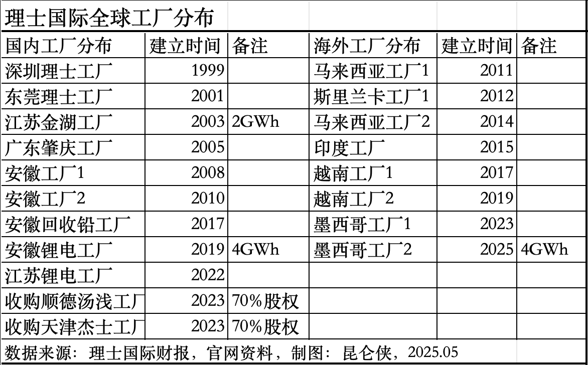根据财报信息及公司调研,为满足北美市场近两年来对铅酸电池与锂电池的持续旺盛需求,理士于2023年启动越南锂电池生产线建设,该项目产能已于2024年投产运营。