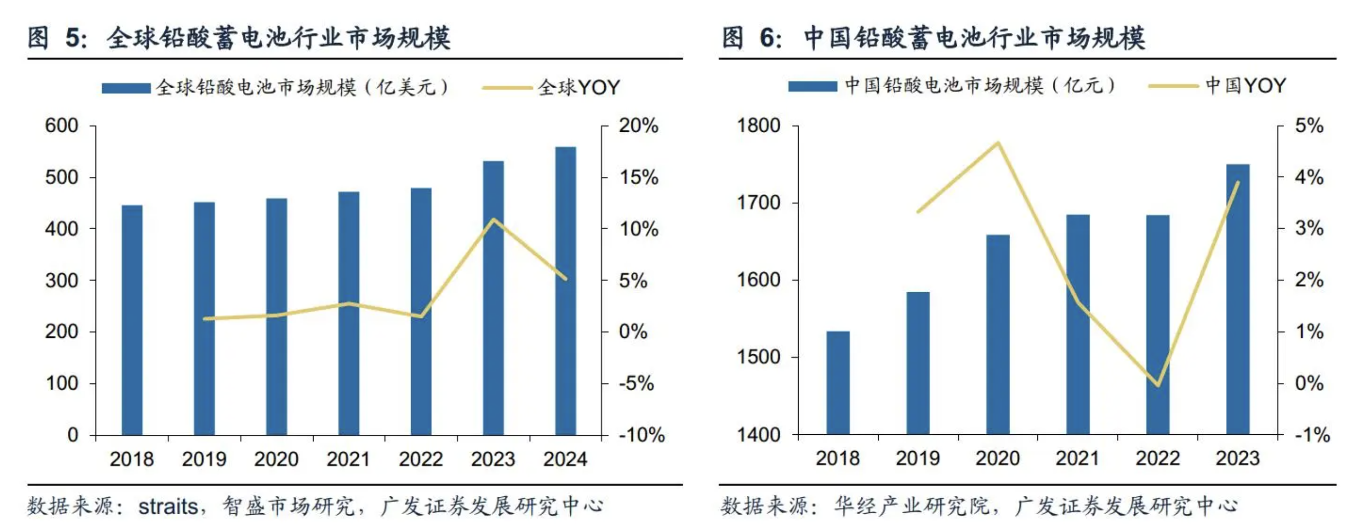 广发证券援引研究机构Straits数据,得益于全球 AI 数据中心强劲需求的拉动,2024年全球铅酸电池市场规模约533亿美元,同比增长 5.2%。