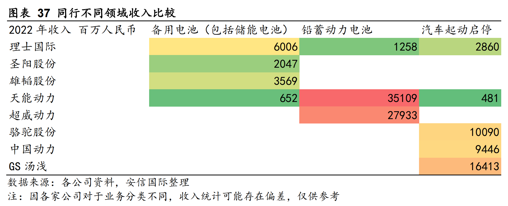 2)起动电池(37%营收):燃油车及新能源车市场双驱动,近两年营收增长主要因东南亚和南美等海外市场发展和国内收购天津杰士和顺德汤浅带动燃油车市场需求。