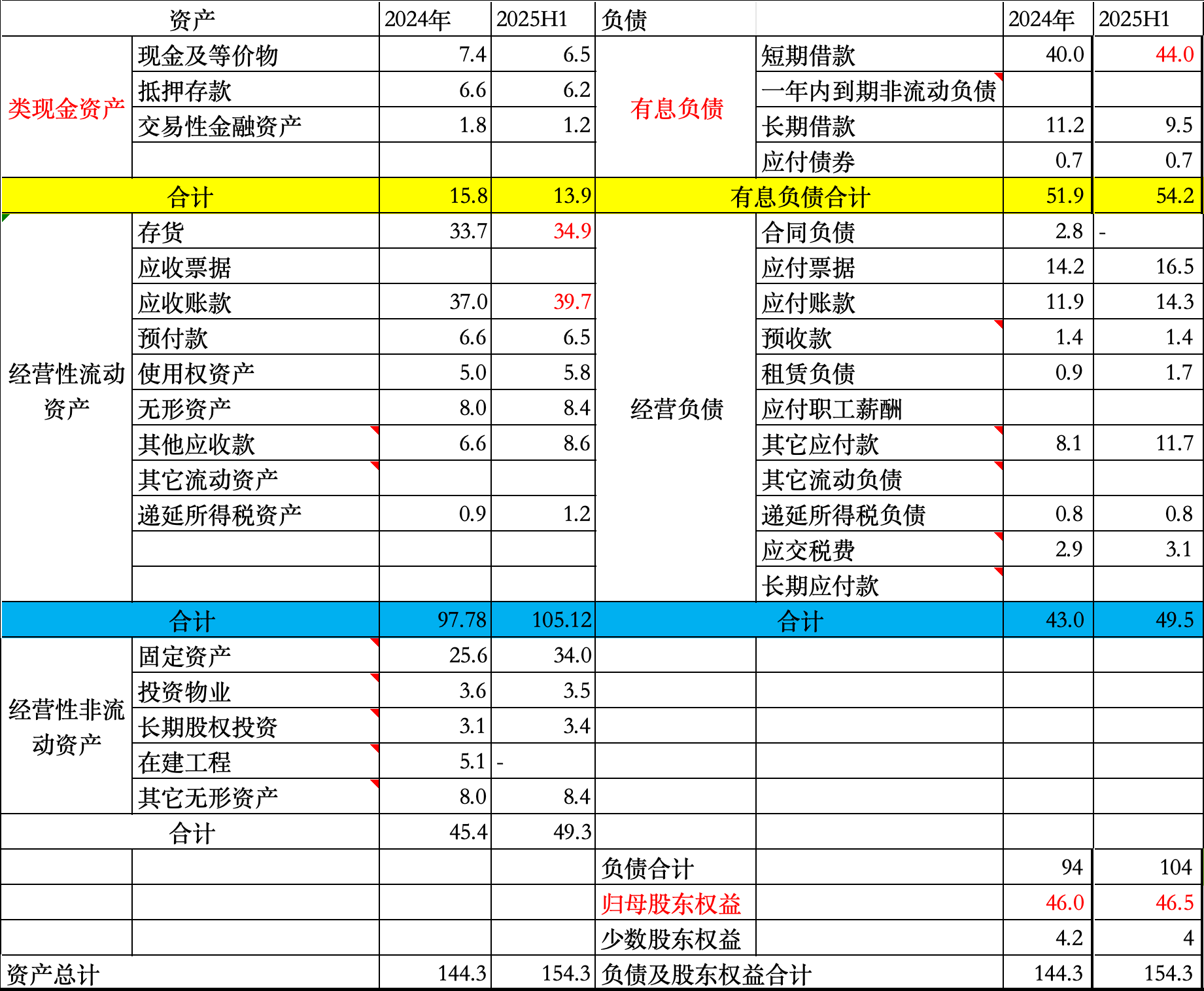 营收质量方面,应收账款占比稳定、账龄较优、坏账计提稳健,不过其资产负债表呈现传统制造业特征,存货和应收款占比高,因扩建产能资产负债率高、短期借贷攀升,在手现金少且还款压力大。