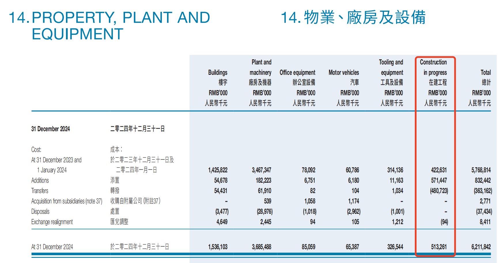 从 2024 年财报中可以看出,2023年底公司在建工程总额4.2亿元,2024 年新增 5.7 亿元,同时转固 4.8 亿元(有新产能投产,营收有望增长),2024 年度在建工程余额仍然高达 5.13亿元(主要是墨西哥新工厂)。