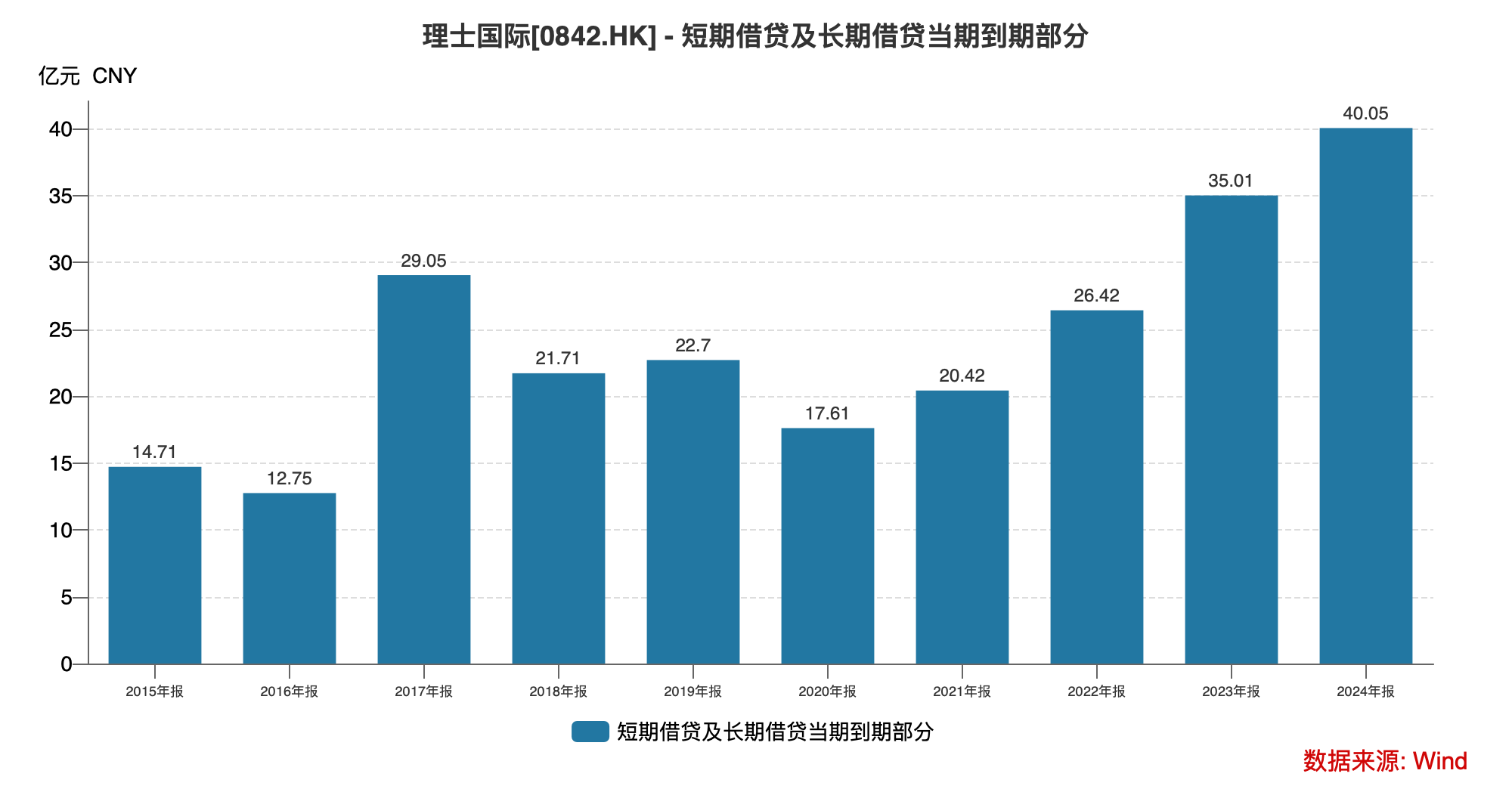 高资产负债率也可以从短期借贷金额看出,过去 5 年短期借贷金额持续攀升,截止2024 年末,公司在手现金金额只有 7 亿元左右,一年到期银行借贷 40 亿元(到期可续贷),有较大的还款压力。