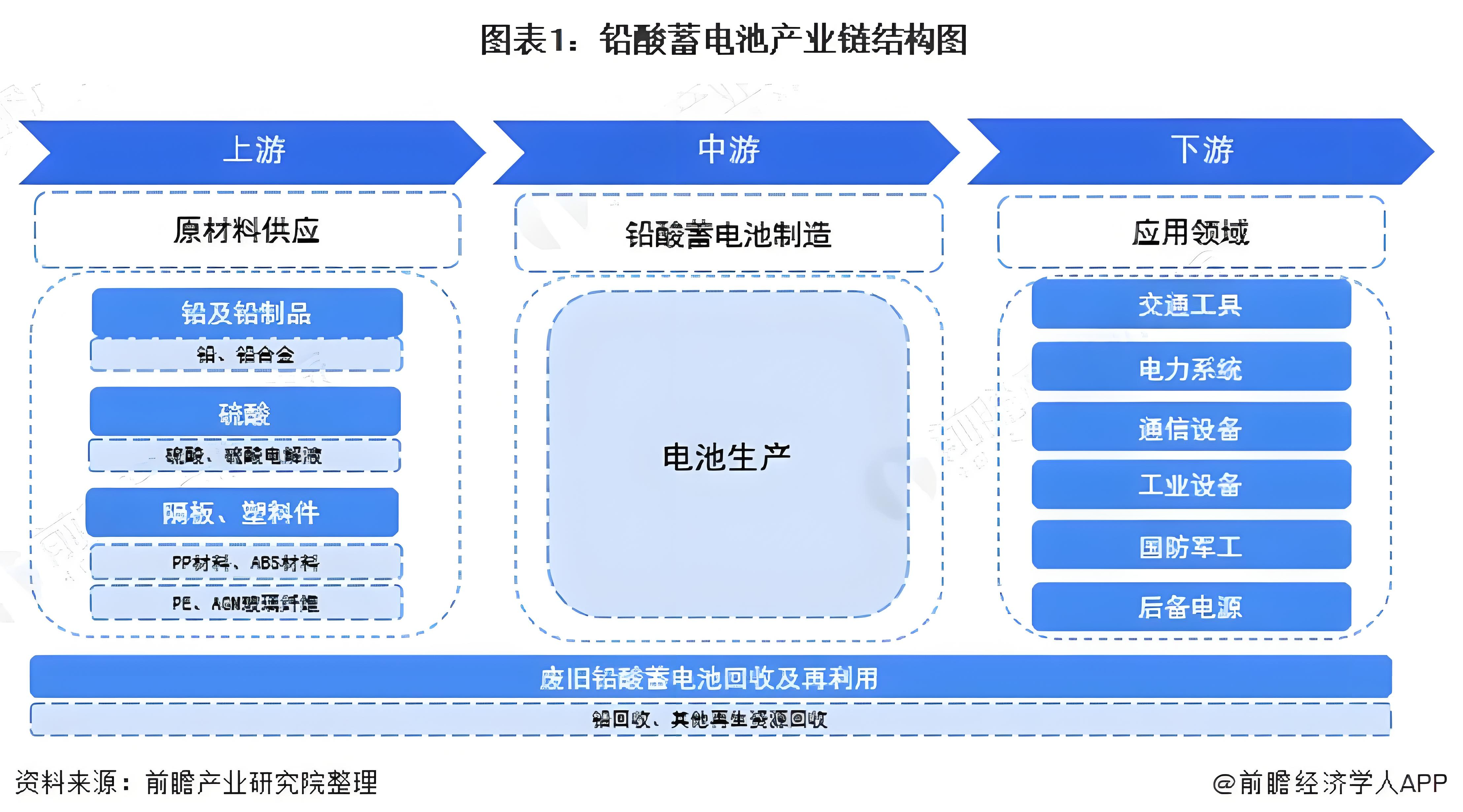铅酸蓄电池的主要构成成分包括用于正负极材料的铅及其制品、用于电池壳体制造的塑料、用于隔膜的玻璃纤维以及作为电解液的硫酸等原材料。