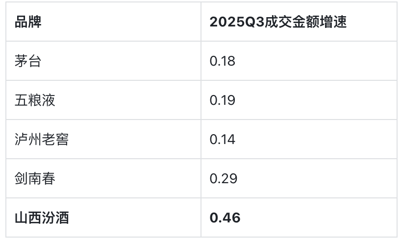 值得关注的是,在 CBI 榜单衡量品牌成长性的核心指标 ——成交金额增速上,山西汾酒同样表现亮眼,进一步佐证其线上销售策略的有效性。