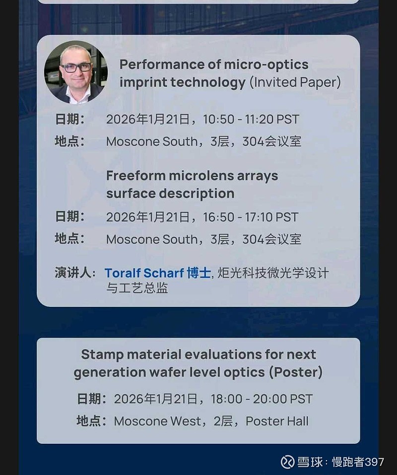 还有一个重要的更新: 炬光并购Heptagon后,第一次在年度重要国际会议出现 next generation WLO(wafer Level Optics)的概念.
