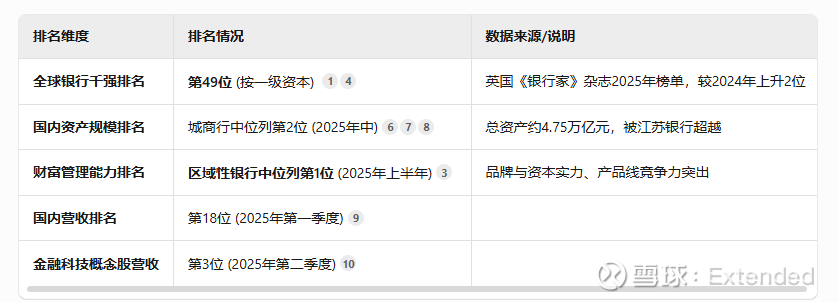 北京银行在全球银行1000强榜单中排名第49位 ,并且是这个级别中唯一的城市商业银行,这个信息很关键。在国内资产规模方面,虽然它曾被长期视为城商行龙头,但最新数据显示江苏银行以4.79万亿元的总资产超越了北京银行的4.75万亿元 ,不过北京银行仍然稳居城商行第二、全国前列的位置。 在财富管理领域,北京银行表现突出,位列区域性银行首位 ,这对它的品牌和业务发展是个重要优势。其他方面,它的营收在2025年第一季度排名第18位 ,在金融科技概念股中排名第三 ,资本充足率虽然面临压力但整体稳健。
