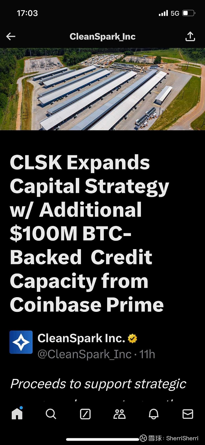 $CleanSpark(CLSK)$ 这笔1亿美元的融资将用于战略资本支出,包括扩大CleanSpark的能源组合、扩大其比特币挖矿业务规模以及投资高性能计算(HPC)能力。