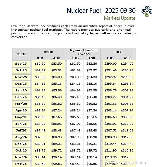 $Centrus Energy(LEU)$ 买leu的朋友们也可以时常了解一下铀价的情况:U308(一定会涨价的果不其然)👉🏻核燃料咨询公司TradeTech在9月末将铀价格锁定在今日收盘价💲⚛️⛏️,但并没有出现“月末暴跌”🔨的情况,因为@UraniumMarkets的价格上涨了1.50美元,达到每磅83.50美元#U3O8⬆️,而@EvoMarkets的价格上涨了50美分,达到83.00美元