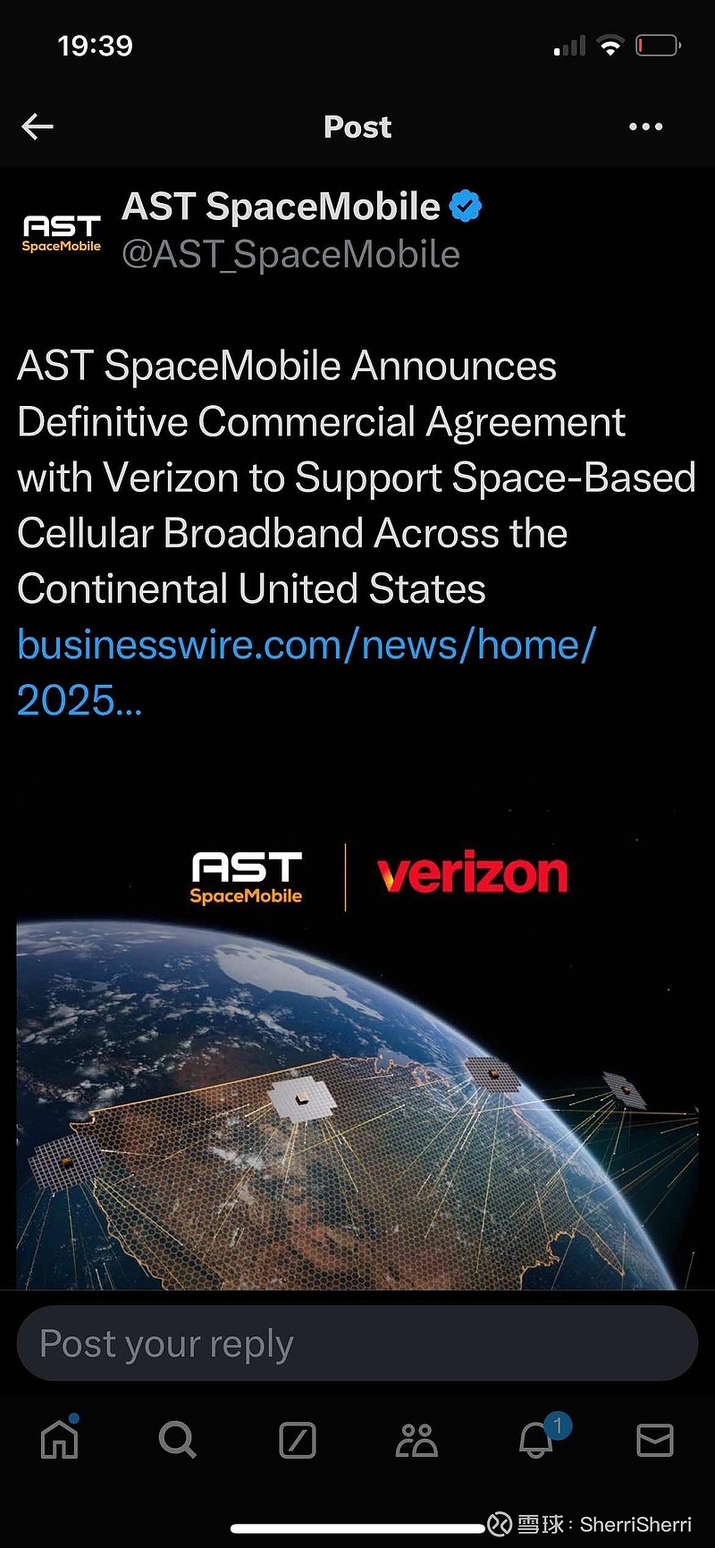 $AST SpaceMobile(ASTS)$ AST SpaceMobile宣布与威瑞森(Verizon)达成最终商业协议,支持美国本土的太空基蜂窝宽带服务。