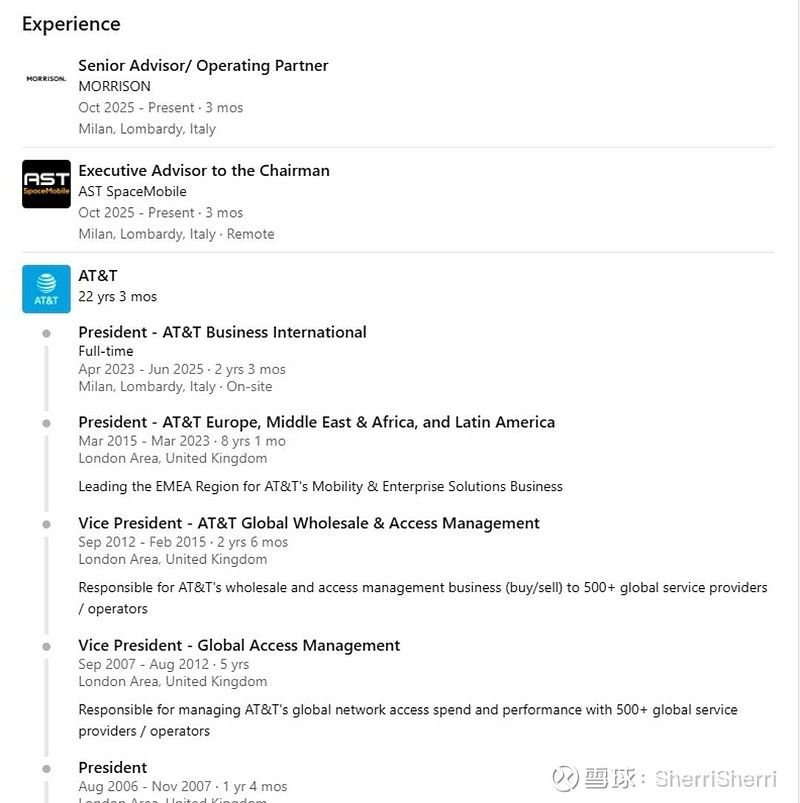 “约翰是全球通信行业的思想领袖,拥有 30 余年横跨多洲的高管经验,曾负责网络、销售、市场营销、广告、产品、资产保护和财务等领域。作为董事长的执行顾问,他协助阿韦兰及 AST SpaceMobile 与全球电信和科技界最顶尖的高层建立并深化战略合作关系。