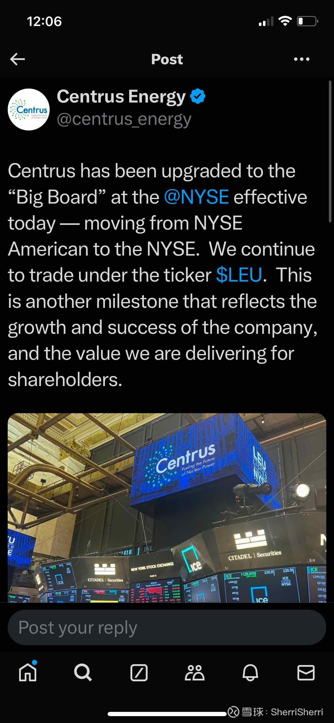 $Centrus Energy(LEU)$ 宣布转板至纽约证券交易所