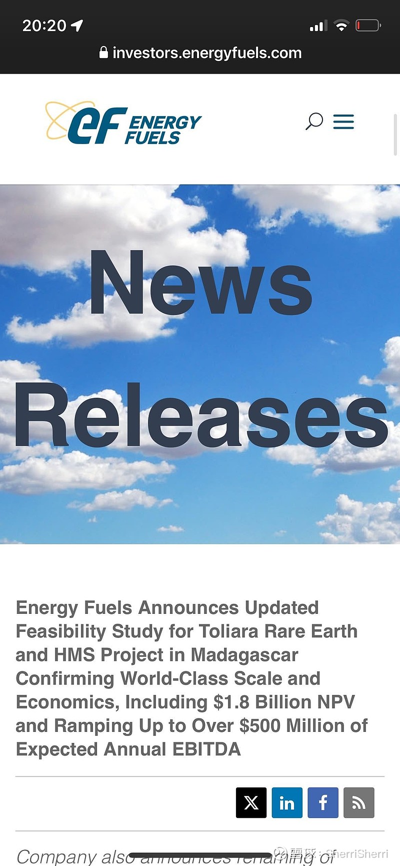 $Energy Fuels(UUUU)$ 官方新闻: