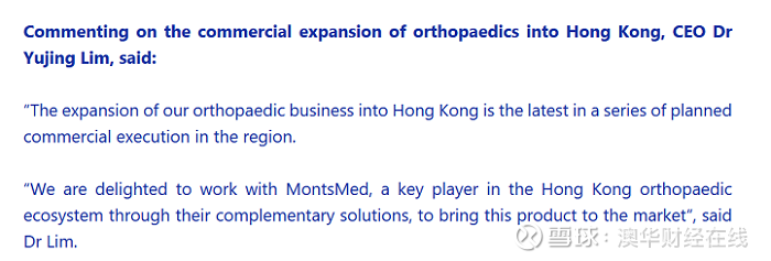 Osteopore CEO Yujing Lim表示,很高兴能与香港骨科生态系统中的关键参与者MontsMed合作,通过其具有互补性的解决方案销售OSX产品。