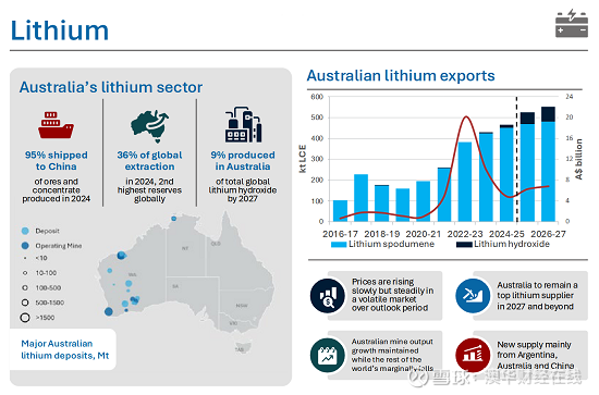 据澳工业部数据,2024年澳大利亚所产锂矿石和精矿有95%发运中国。