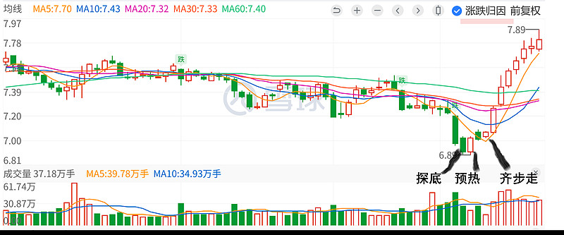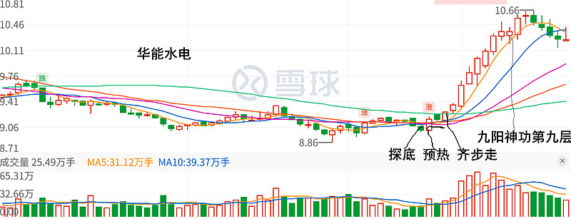 两者有几个相似的地方,先探底,然后反弹预热,再回调稍息一天,然后开始齐步走连续上涨。华能水电连续上涨了11天,在出现红十字之后结束了一轮上涨开始回调。雅戈尔明天开始九阳神功第九层,依华水这个葫芦画瓢的话,下周还能涨两天差不多就到阶段顶部了,刚好下周一股东大会,以股东大会的利好最后推一把,在周二达峰。峰的高度在哪里?8.08,8.18,8.28?都是吉利数字。
